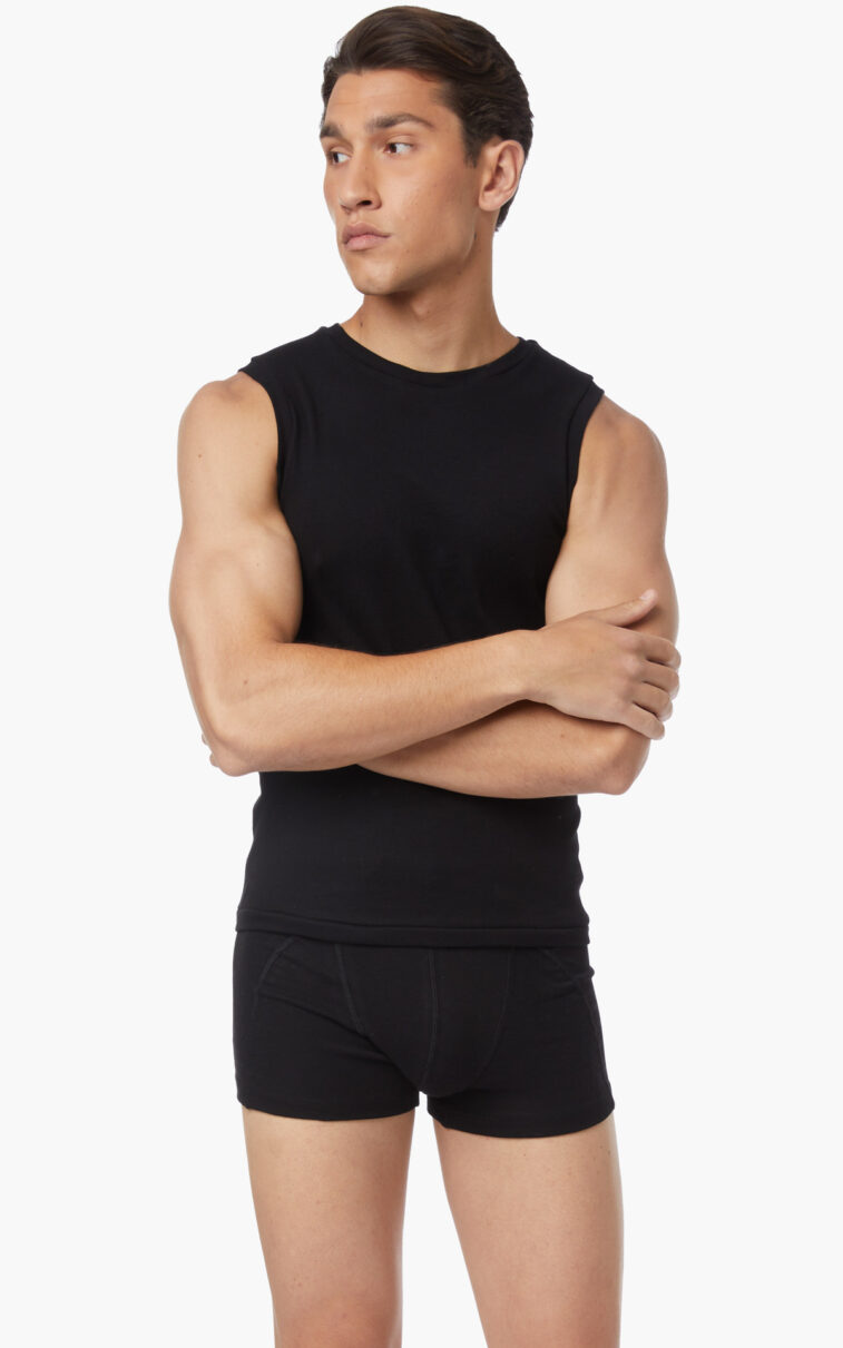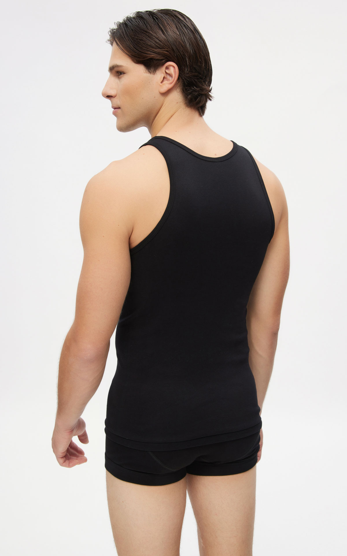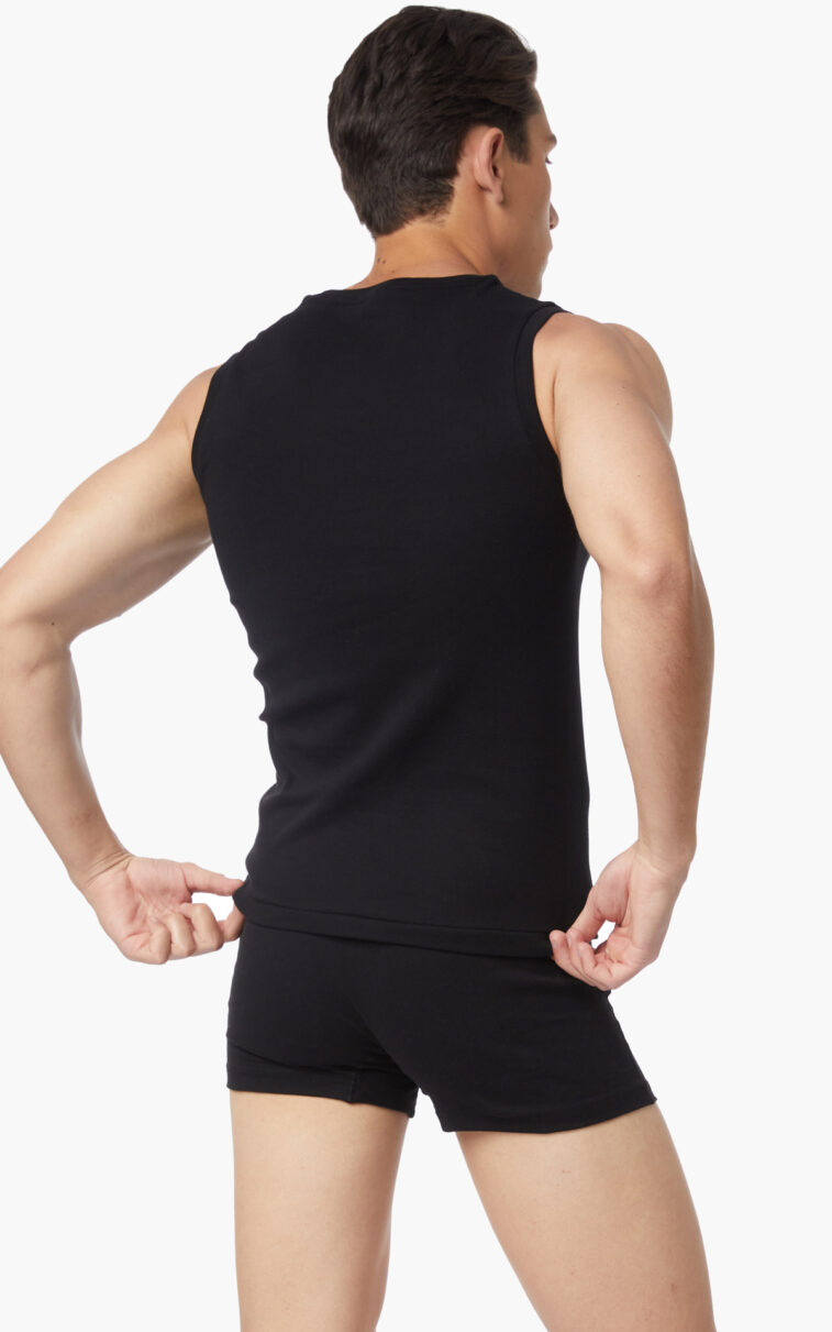 Ανδρική φανέλλα αμάνικη, σε οικονομική συσκευασία 2τμχ. Από 100% βαμβακερό ύφασμα rib 1X1 εξαιρετικής ποιότητας, με επεξεργασία anti-pilling, που ελαχιστοποιεί τα χνούδια και προσδίδει ακόμα πιο απαλή αίσθηση καθ’ όλη τη διάρκεια της ημέρας και εξαιρετική εφαρμογή. (Μαυρο)