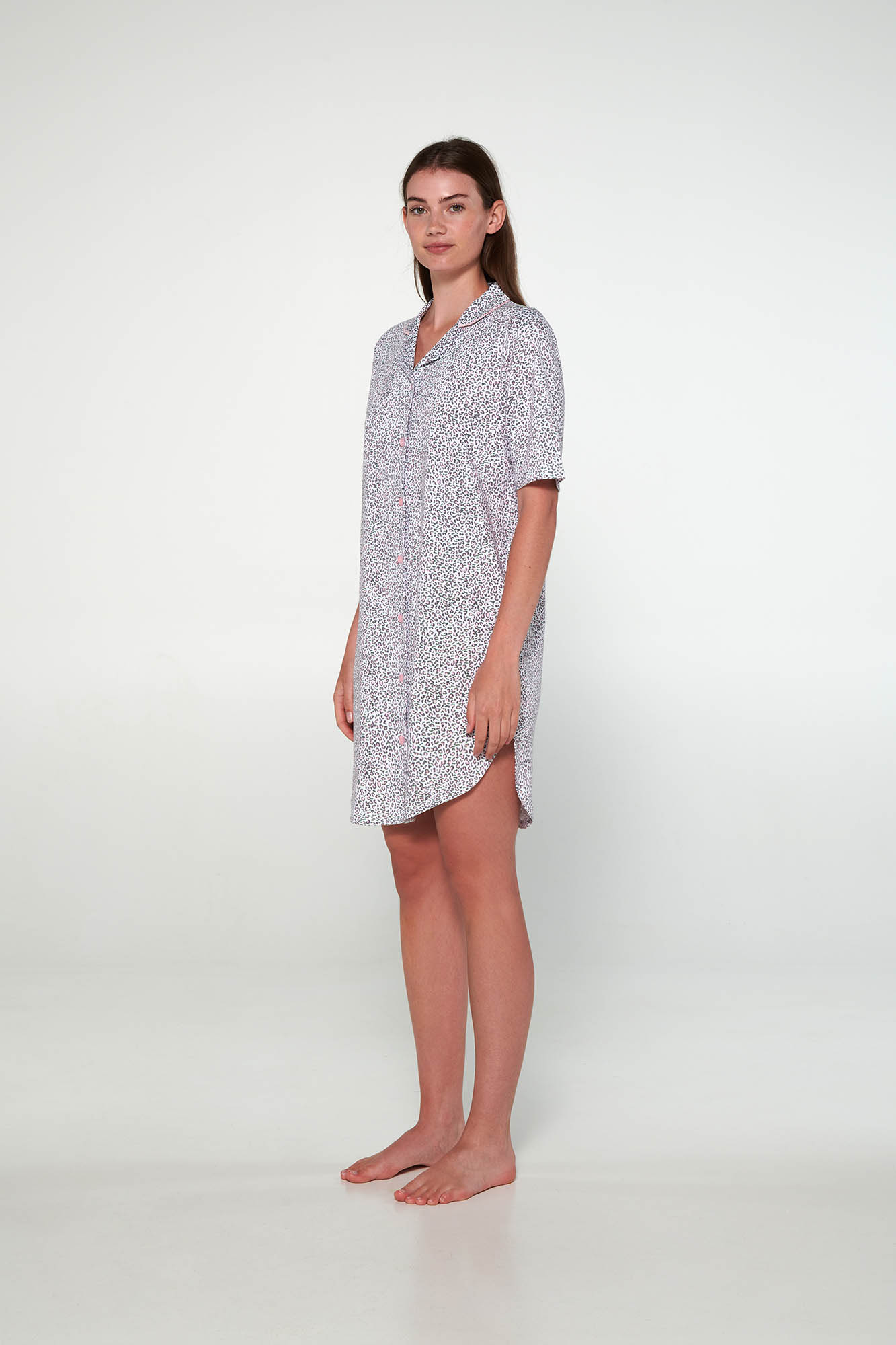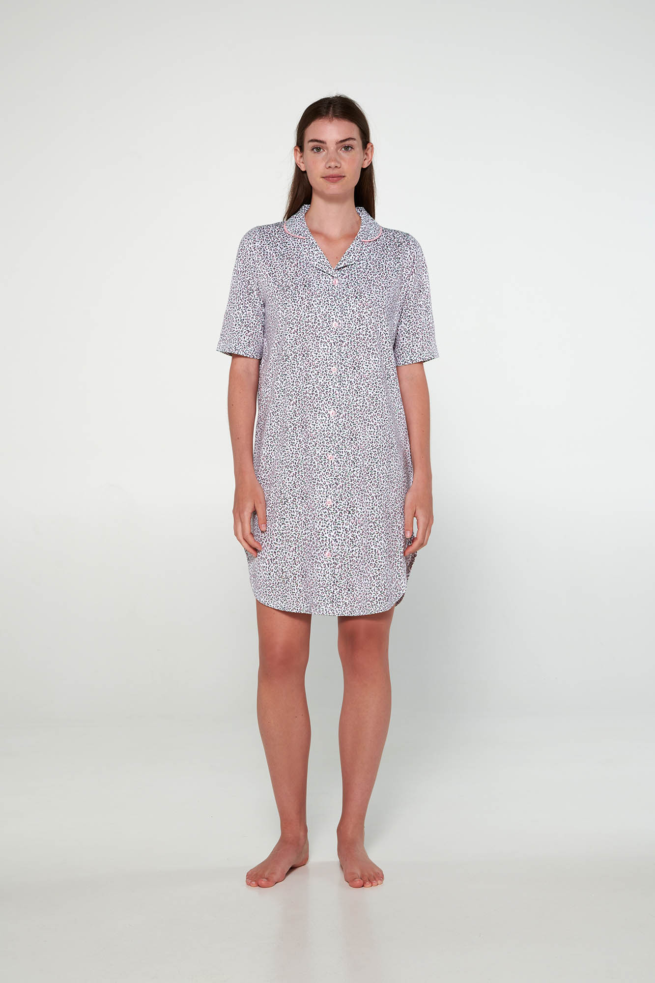Εμπριμέ νυχτικό με κουμπιά και κοντό μανίκι. Ένα νεανικό animal print για κάθε καλοκαίρι.