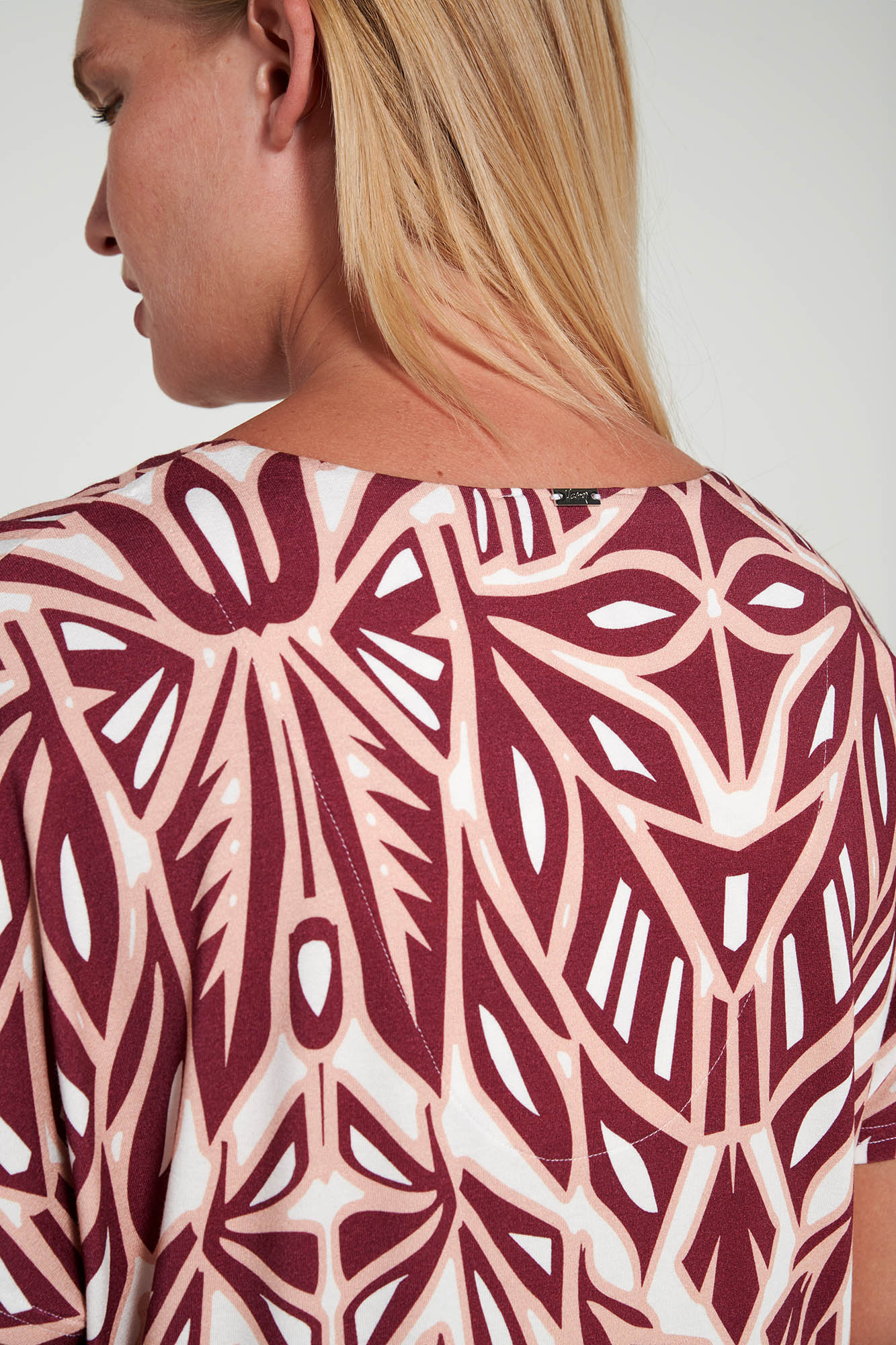 Εμπριμέ, μακρύ φόρεμα με κοντό μανίκι. Ένα όμορφο σχέδιο που θα απολαύσετε κάθε στιγμή της ημέρας.