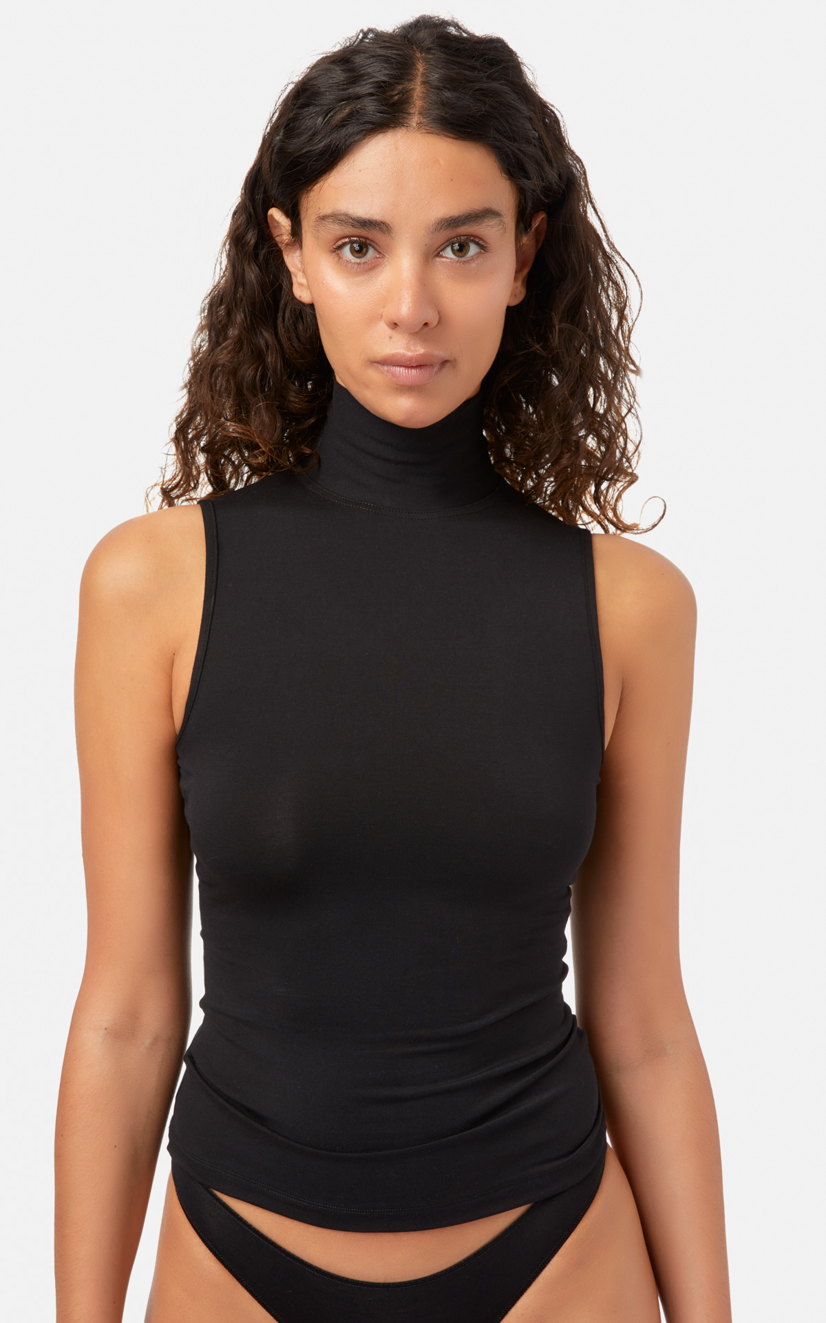 Ζιβάγκο αμάνικη γυναικεία μπλούζα. Kατασκευασμένη από 95% ίνα TENCEL™ Modal και 5% elastan, διατηρεί το χρώμα και το σχήμα, εξασφαλίζοντας διαρκή ποιότητα και άνεση. Έχει πολύ απαλή, μεταξένια υφή και προσφέρει την απόλυτη εφαρμογή σε όλους τους σωματότυπους. (Μαυρο)