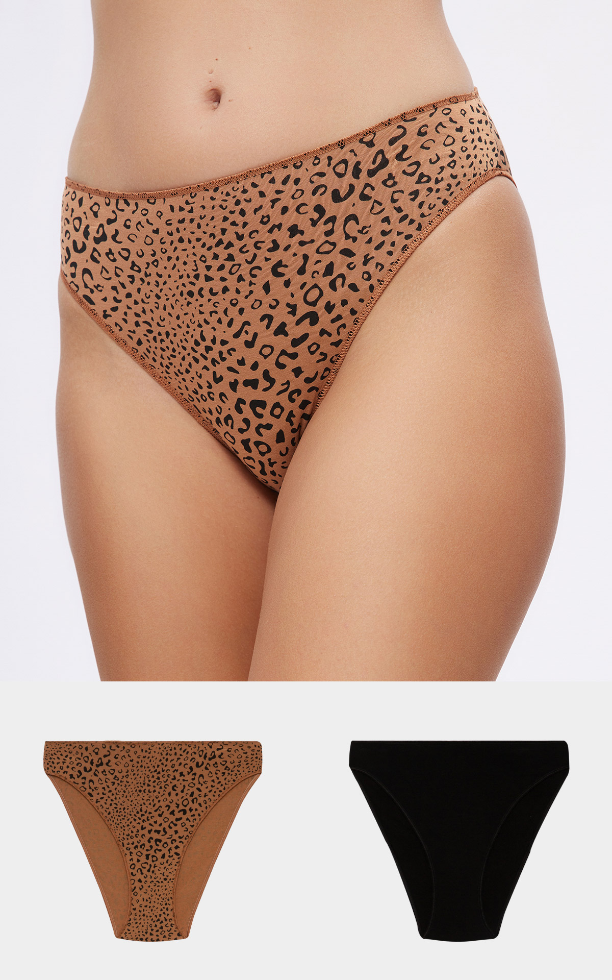 Γυναικείο κυλοτάκι brazil σε συσκευσία 2 τμχ. με invisible επίπεδες ραφές, προσφέρει άνεση και τέλεια εφαρμογή. Κατασκευασμένο από 95% ίνα TENCEL™ Modal και 5% elastane, διατηρεί το χρώμα και το σχήμα, εξασφαλίζοντας διαρκή ποιότητα και άνεση. (Animal caramel-black)