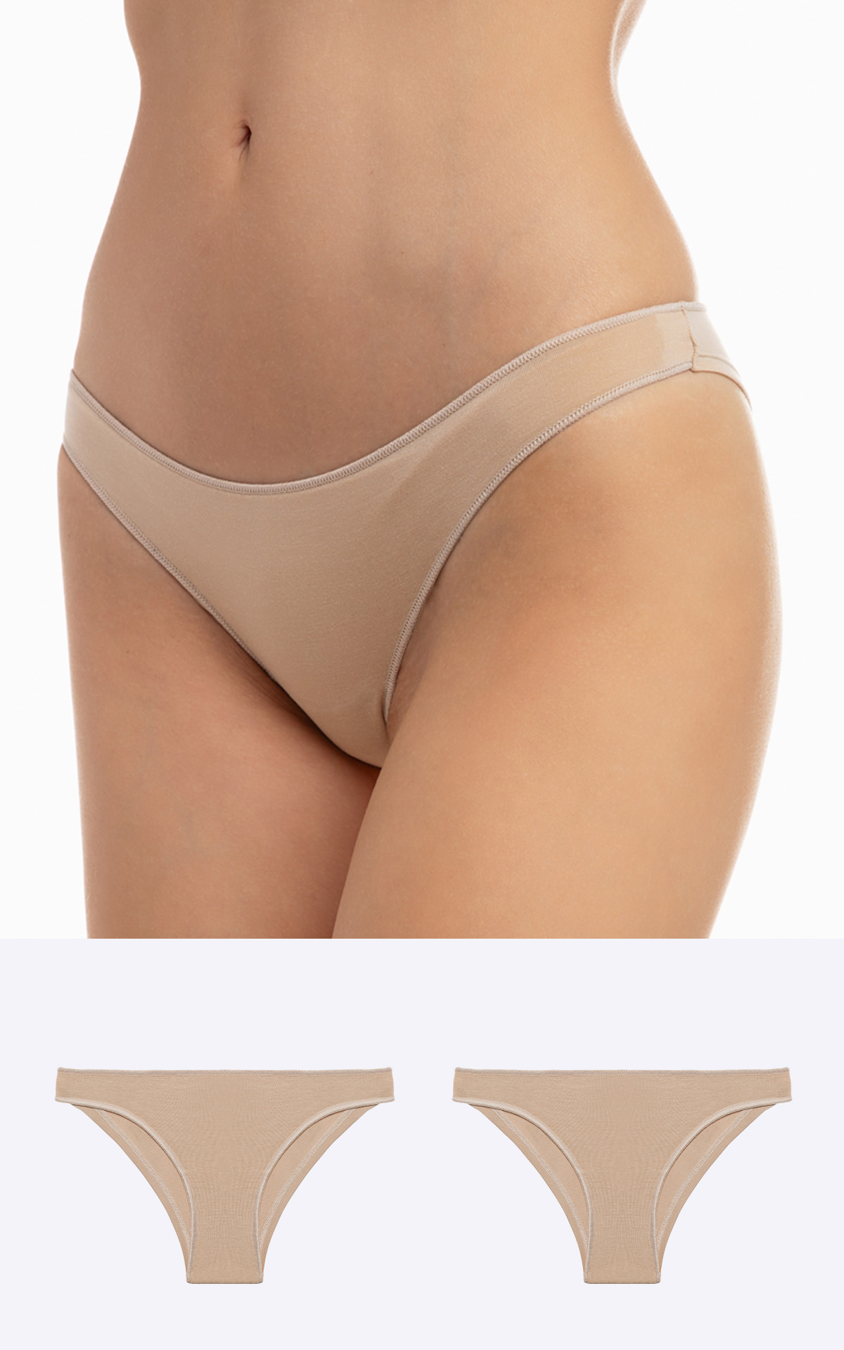 Γυναικείο κυλοτάκι rio bikini σε συσκευσία 2 τμχ. με invisible επίπεδες ραφές, προσφέρει άνεση και τέλεια εφαρμογή. Κατασκευασμένο από 95% ίνα TENCEL™ Modal και 5% elastane, διατηρεί το χρώμα και το σχήμα, εξασφαλίζοντας διαρκή ποιότητα και άνεση. (Δερμα)