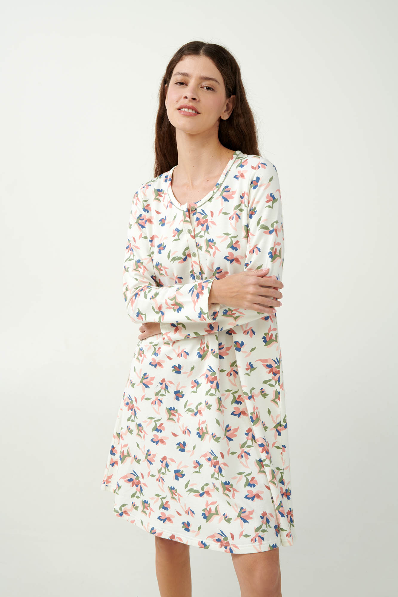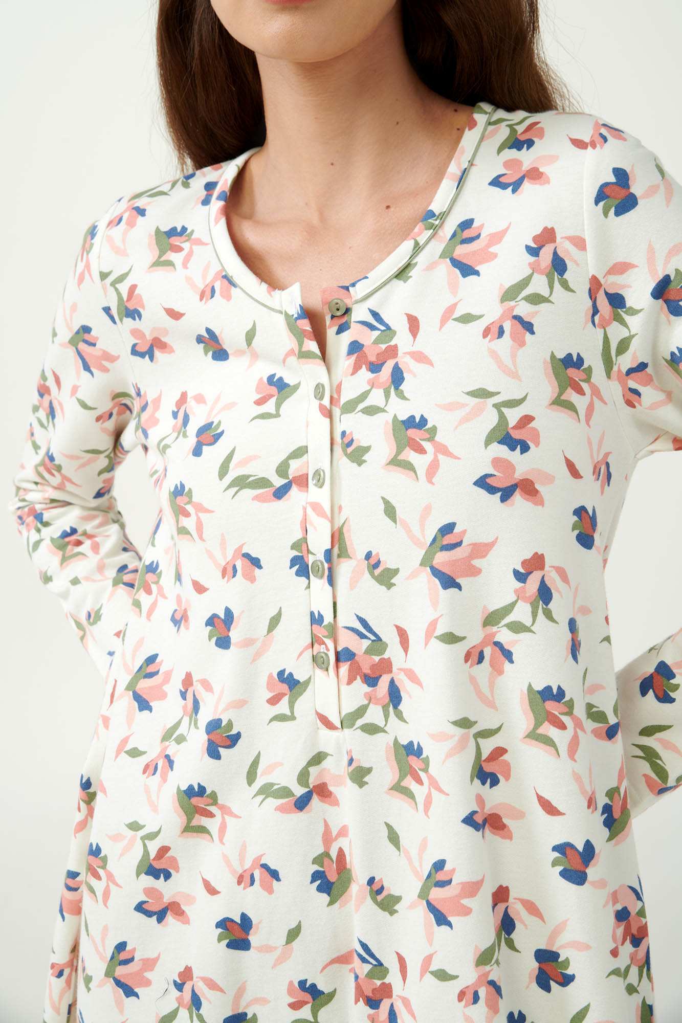 Ανακαλύψτε την άνεση που μπορεί να σας προσφέρει ένα φλοράλ νυχτικό, κατάλληλο για την περίοδο της εγκυμοσύνης. Σχεδιασμένο σε χαλαρή γραμμή, με πρακτική πατιλέτα που εξυπηρετεί το θηλασμό. Κατασκευασμένο από 100% βαμβάκι φούτερ προσφέρει απαλή και ζεστή αίσθηση στο σώμα ενώ το φωτεινό φλοράλ προσθέτει μια κλασική νότα κομψότητας. Ένα ιδανικό νυχτικό για μέλλουσες και νέες μητέρες, που εξασφαλίζει ζεστή και κομψή άνεση στο όμορφο αυτό ταξίδι.