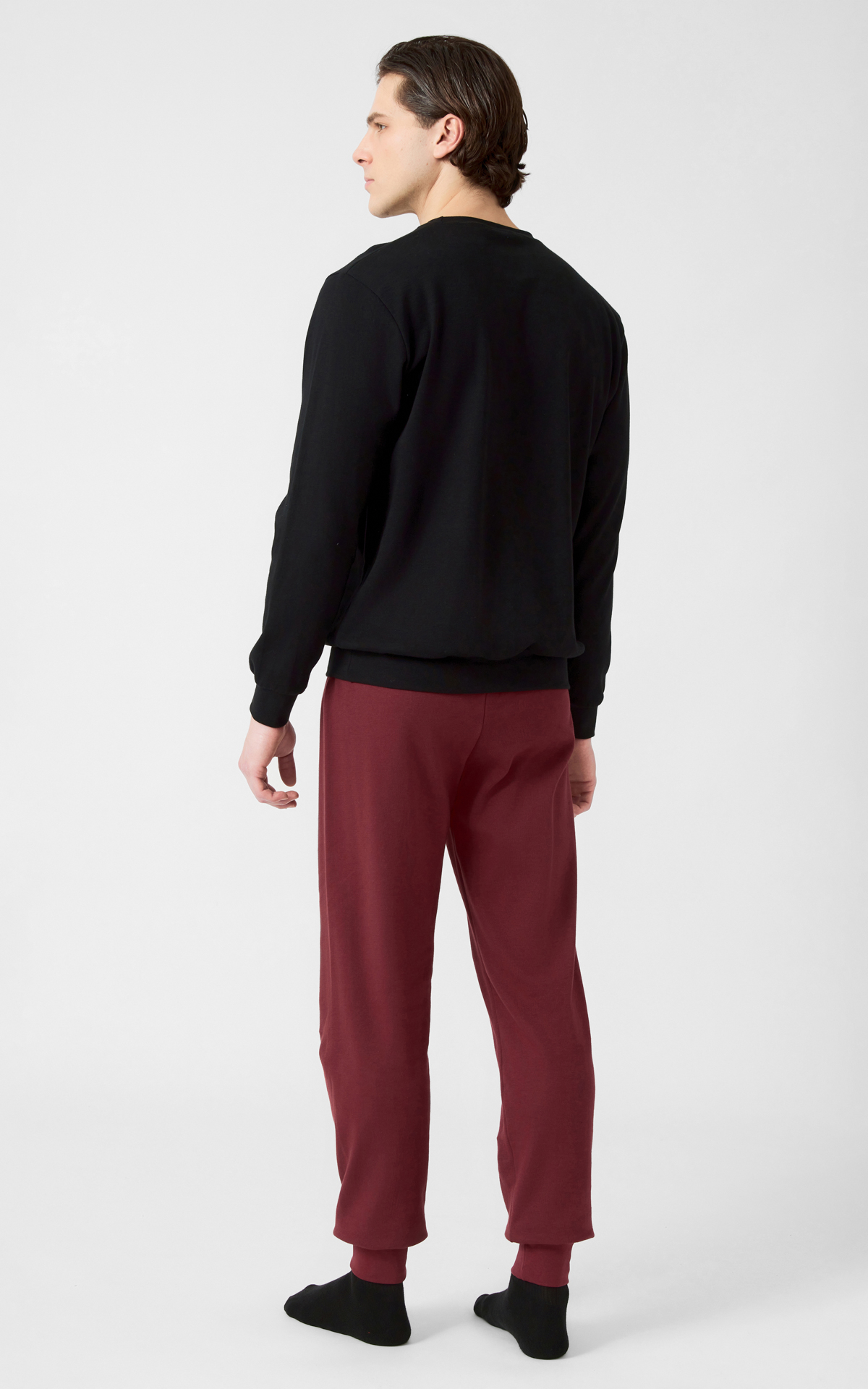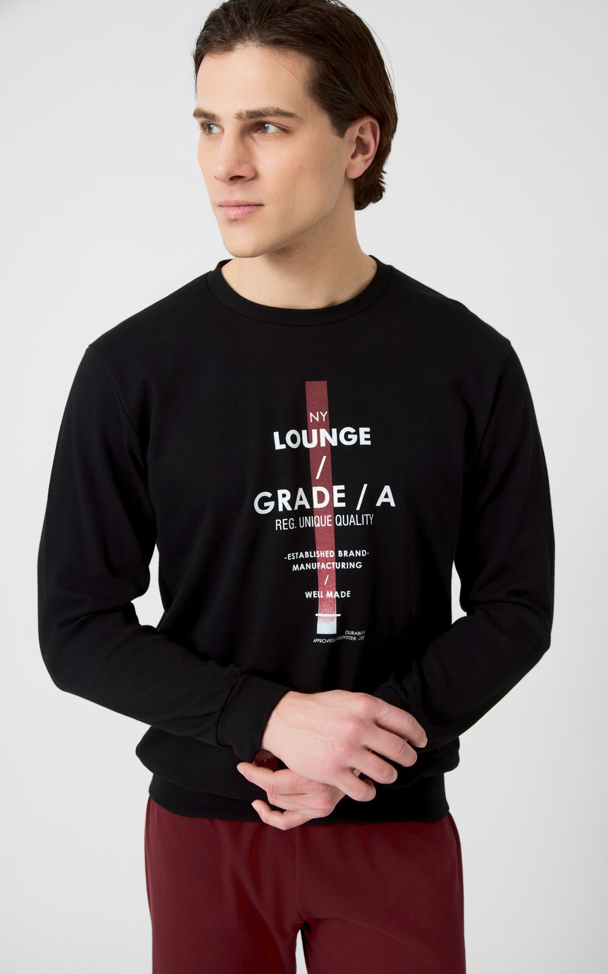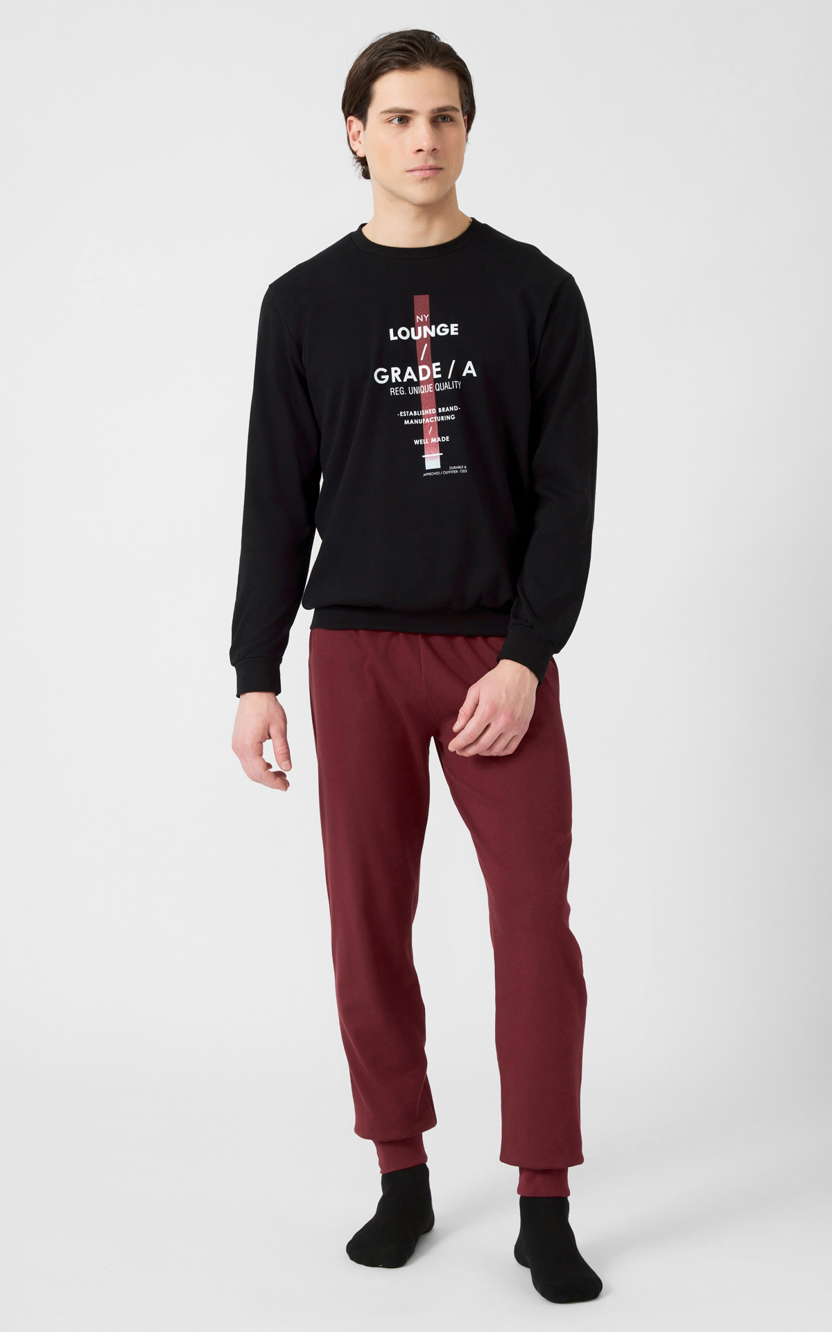 Χειμερινή πυζάμα, ζεστή, από 90% βαμβάκι και 10% ναυλον. Το σετ περιλαμβάνει μπλούζα με στρογγυλή λαιμόκοψη, τύπωμα στο στήθος και παντελόνι με μπάσκες στα τελειώματα. (Μαυρο)