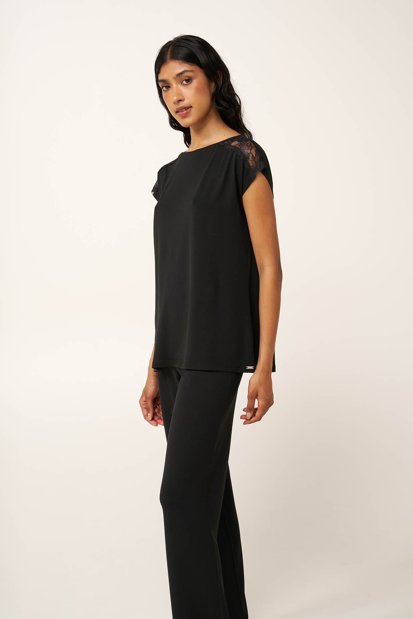 Προσθέστε στην γκαρνταρόμπα σας ένα καλοκαιρινό σετ γυναικείες πυτζάμες, κατασκευασμένο από εξαιρετικά απαλό και διαπνέον LENZING Tencel Modal Micro που αγκαλιάζει ευχάριστα το σώμα. Σχεδιασμένο σε χαλαρή, αέρινη γραμμή με μακρύ παντελόνι και τοπ διακοσμημένο με κομψή δαντέλα στους ώμους που ενισχύει τον διαχρονικό του χαρακτήρα. Ελαφρύ και δροσερό είναι μια επιλογή που θα απολαύσετε για χρόνια.