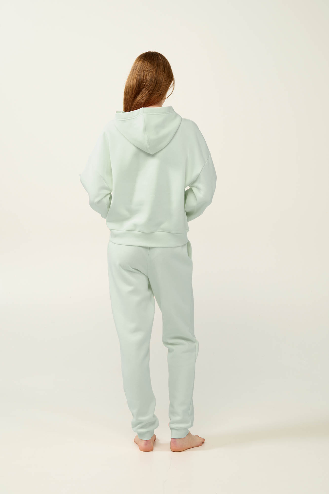 Επιλέξτε μια γυναικεία χειμερινή φόρμα σε απαλές παστέλ αποχρώσεις, κατασκευασμένη από πλούσιο σε βαμβάκι φούτερ, με ζεστή και απαλή υφή, ιδανική για χαλάρωση στο σπίτι αλλά και για casual εξόδους. Το πάνω μέρος είναι σχεδιασμένο με κουκούλα, διακριτικό τύπωμα στο στήθος, μανσέτες στα μανίκια και λάστιχο στη μέση για άνετη εφαρμογή. Το σετ συμπληρώνει ένα παντελόνι με τσέπες στο πλάι και μανσέτες στο τελείωμα.. Ένα καθημερινό σετ που θα σας χαρίσει άνεση και πρακτικότητα.