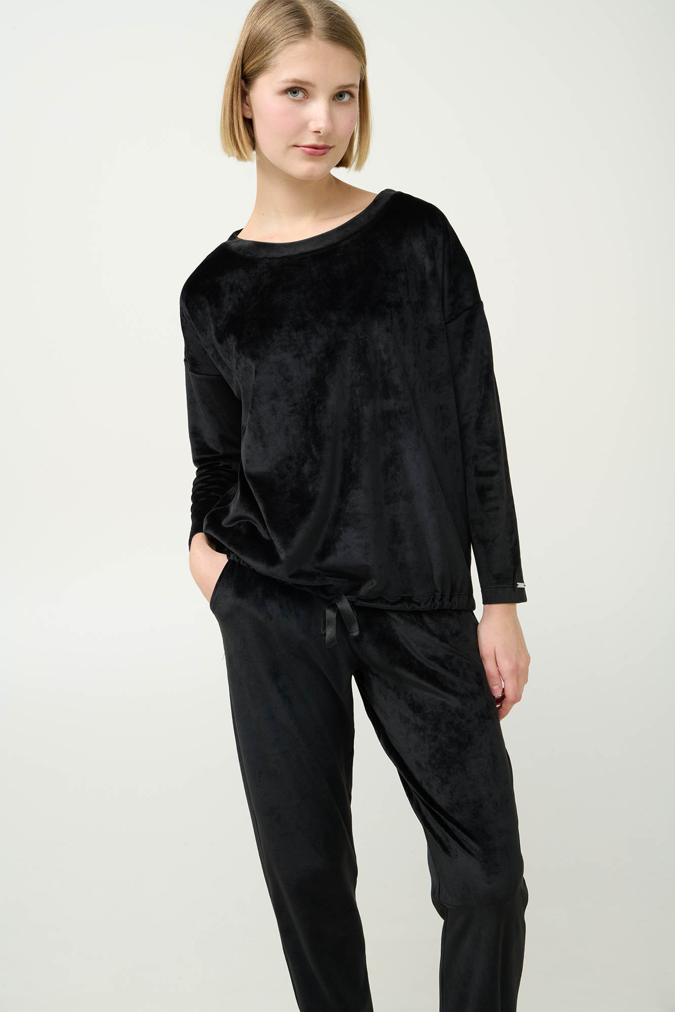 Επιλέξτε μια μονόχρωμη χειμερινή, γυναικεία φόρμα από απαλό και ελαστικό βελούδο. Το πάνω μέρος είναι σχεδιασμένο σε χαλαρή γραμμή με ρυθμιζόμενο λάστιχο στη μέση για βέλτιστη εφαρμογή. Το σετ συμπληρώνει ένα μονόχρωμο παντελόνι με μανσέτες. Ιδανικό για χαλαρές στιγμές στο σπίτι ή casual εξόδους, αυτό το σετ έχει σχεδιαστεί για να παρέχει κομψότητα και άνεση.