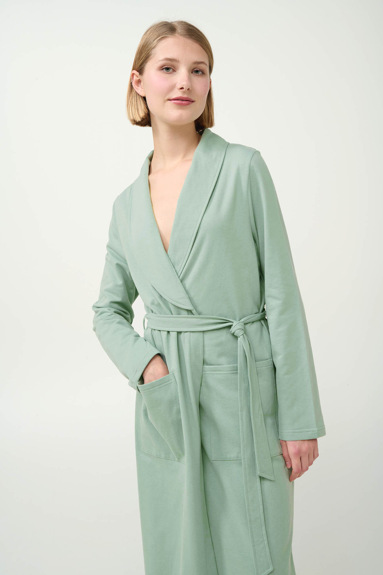 Προσθέστε στη γκαρνταρόμπα σας μα κλασική χειμερινή γυναικεία ρόμπα, κατασκευασμένη από 100% βαμβάκι φούτερ για φυσικά ζεστή και απαλή αίσθηση. Σχεδιασμένη με διαχρονικό κρουαζέ σχέδιο, δένει εύκολα με ζώνη για άνετη και ρυθμιζόμενη εφαρμογή. Οι πλαϊνές τσέπες προσθέτουν πρακτικότητα, και μπορείτε να την φορέσετε πάνω από το αγαπημένο σας νυχτικό ένα χαλαρό απόγευμα στον καναπέ.