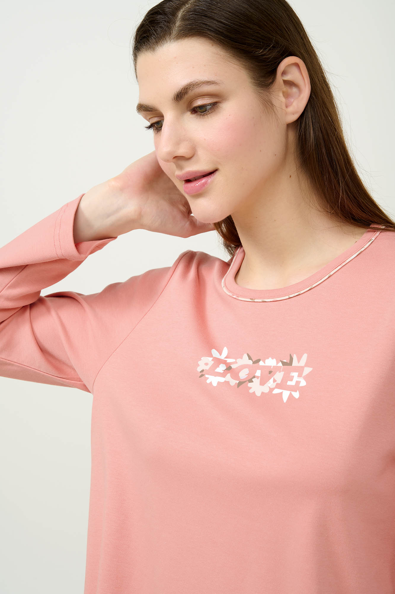 Ανακαλύψτε την απόλυτη άνεση με αυτό το χειμερινό σετ γυναικείες πιτζάμες, φτιαγμένο από 100% βαμβακερό interlock για απαλή και διαπνέουσα αίσθηση. Αποτελείται από παντελόνι σε απαλό ροζ φλοράλ μοτίβο, με ρομαντική και διαχρονική διάθεση. Το σετ συμπληρώνει ένα τοπ σε ροζ απόχρωση με μακριά μανίκια και διακριτικό τύπωμα στο στήθος. Μια πυτζάμα που θα απολαύσετε για χρόνια χαλαρώνοντας μετά από μια μεγάλη ημέρα.