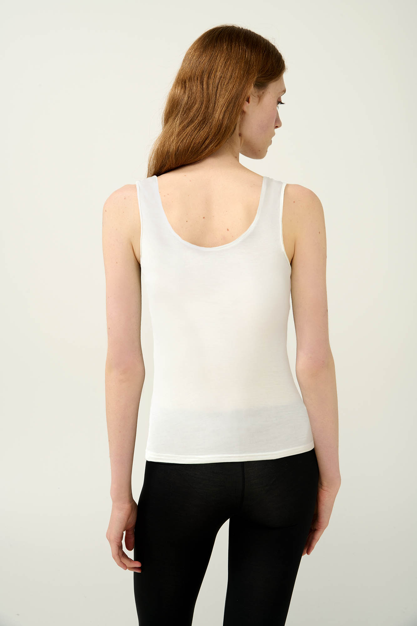 Προσθέστε στη γκαρνταρόμπα σας ένα αμάνικο φανελάκι που θα απολαύσετε κάθε στιγμή της ημέρας. Είναι κατασκευασμένο από LENZING Tencel Modal Micro, ένα ύφασμα που αγκαλιάζει ευχάριστα το σώμα με μοναδικά απαλή υφή. Ιδανική επιλογή για layering κάτω από τα ρούχα σας ή για στιγμές χαλάρωσης στο σπίτι.