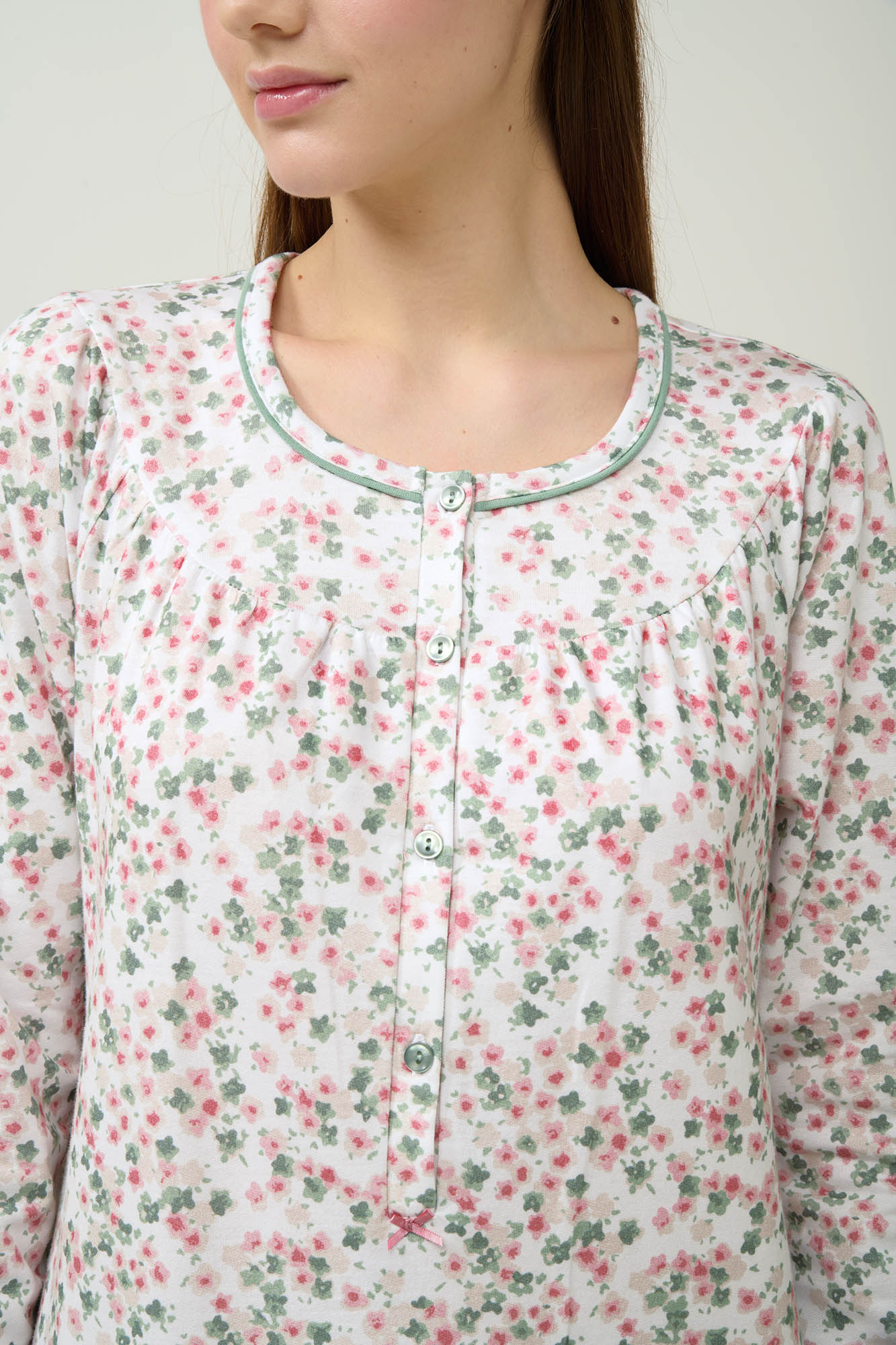 Προσθέστε στη γκαρνταρόμπα σας ένα κλασικό νυχτικό, κατασκευασμένο από 100% βαμβάκι φούτερ που προσφέρει ζεστή αίσθηση στο σώμα για τις κρύες ημέρες του χειμώνα. Είναι σχεδιασμένο με πατιλέτα σε ρομαντικό φλοράλ μοτίβο που χαρίζουν διαχρονικό στυλ και κομψότητα. Ένα νυχτικό που θα φορέσετε για χρόνια στις στιγμές ξεκούρασης σας.