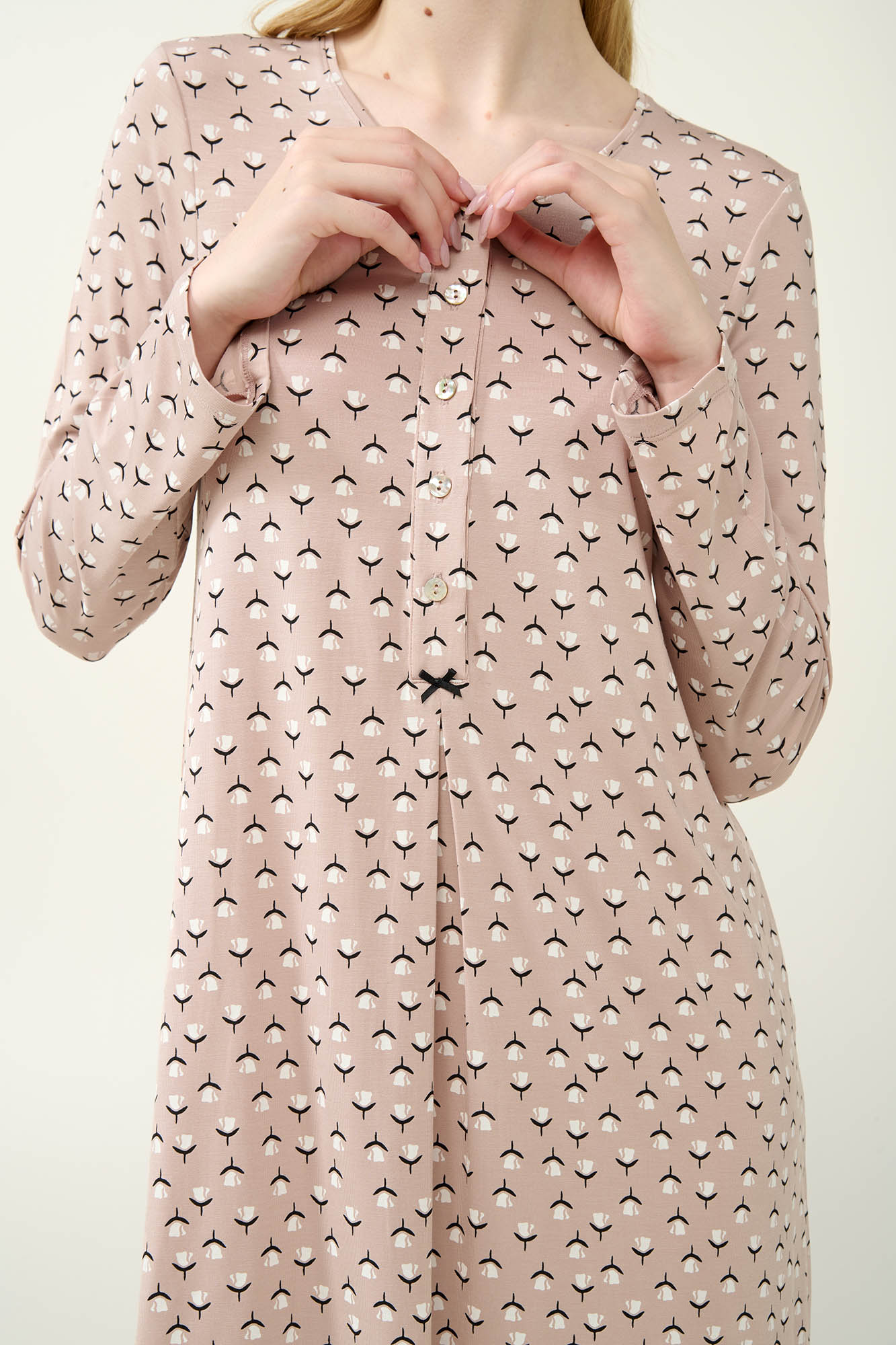 Επιλέξτε αυτό το κομψό νυχτικό εγκυμοσύνης και θηλασμού κατασκευασμένο από πολυτελές LENZING Tencel Modal Micro που προσφέρει εξαιρετικά απαλή αίσθηση στο δέρμα και μοναδική άνεση. Σχεδιασμένο με πρακτική πατιλέτα που διευκολύνει το θηλασμό και πιέτα κάτω από το στήθος που δημιουργεί επιπλέον χώρο στη περιοχή της κοιλιάς που μεγαλώνει. Το διακριτικό, μίνιμαλ, φλοράλ μοτίβο χαρίζει θηλυκότητα και διαχρονική κομψότητα. Μια ιδανική επιλογή για κάθε νέα και μέλλουσα μητέρα.