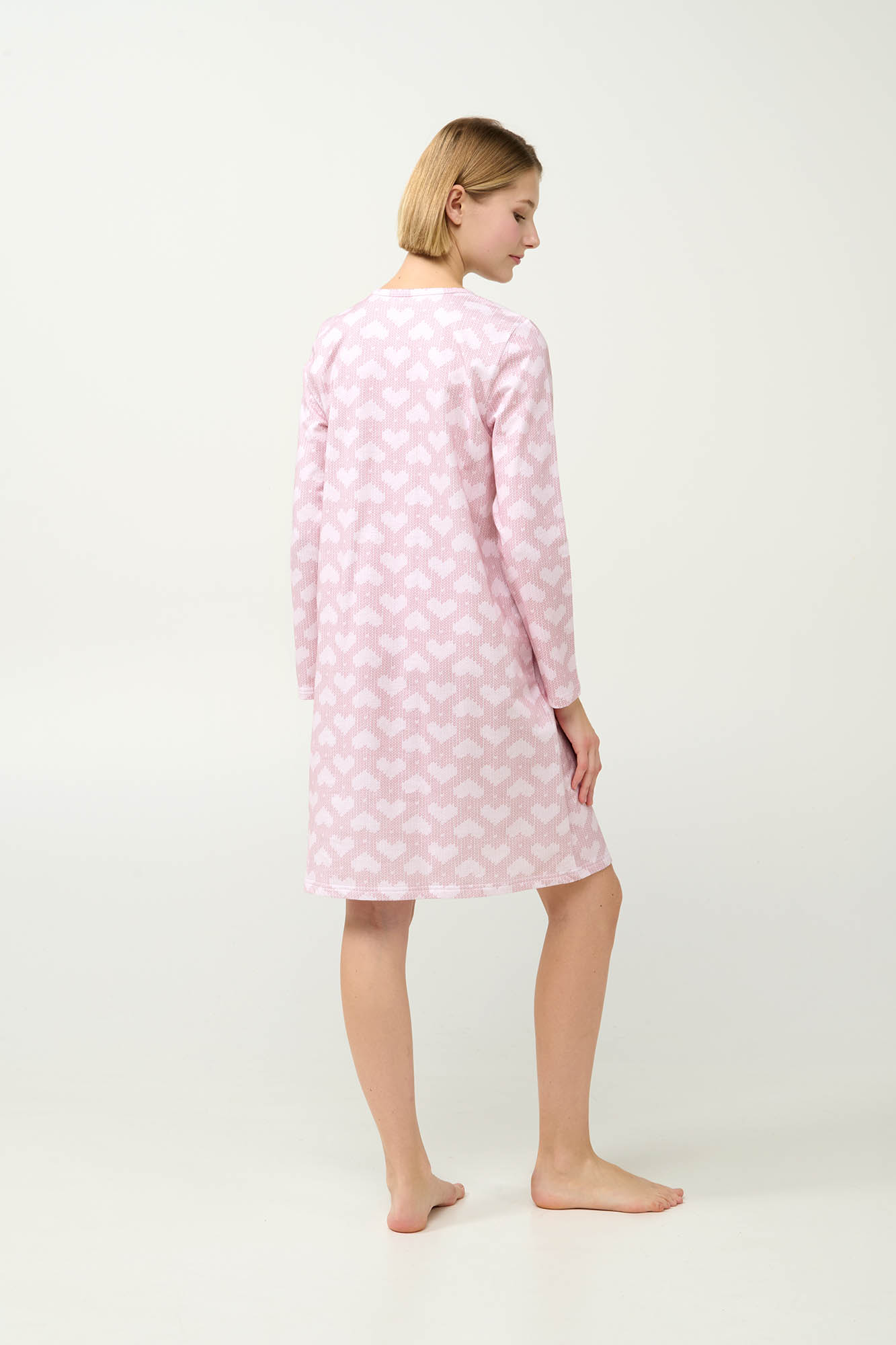 Προσθέστε στη συλλογή σας ένα νυχτικό, κατασκευασμένο από 100% βαμβάκι φούτερ που προσφέρει ζεστή αίσθηση και απαλή υφή στο σώμα. Διαθέτει πατιλέτα στο στήθος και είναι διακοσμημένο με διαχρονικό pied de poule μοτίβο που σχηματίζει καρδιές για να δώσει μια ανάλαφρη νότα στο διαχρονικό χαρακτήρα του. Ένα νυχτικό σχεδιασμένο για να δώσει την απαραίτητη άνεση μετά από μια μεγάλη ημέρα.