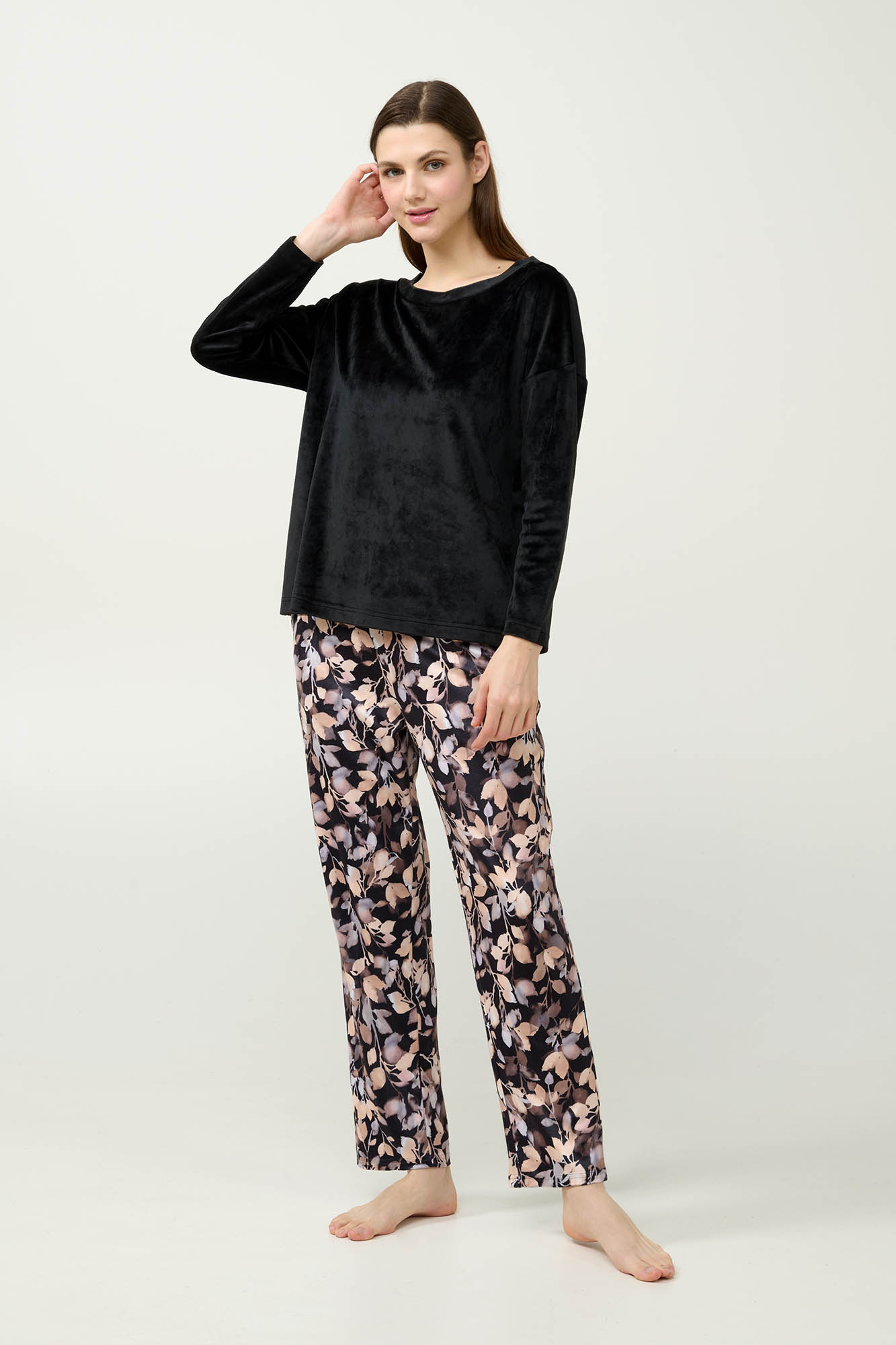 Προσθέστε στη γκαρνταρόμπα σας αυτό το σετ σπιτιού από απαλό, ελαστικό βελούδο. Αποτελείται από ένα παντελόνι με ονειρικό, φλοράλ μοτίβο ακουαρέλα σε ζεστές αποχρώσεις και μονόχρωμη μπλούζα με λαιμόκοψη χαμόγελο, που χαρίζει ισορροπία στο σύνολο. Απολαύστε τον πρώτο καφέ της ημέρας ή ένα χαλαρό απόγευμα με άνεση και κομψότητα.