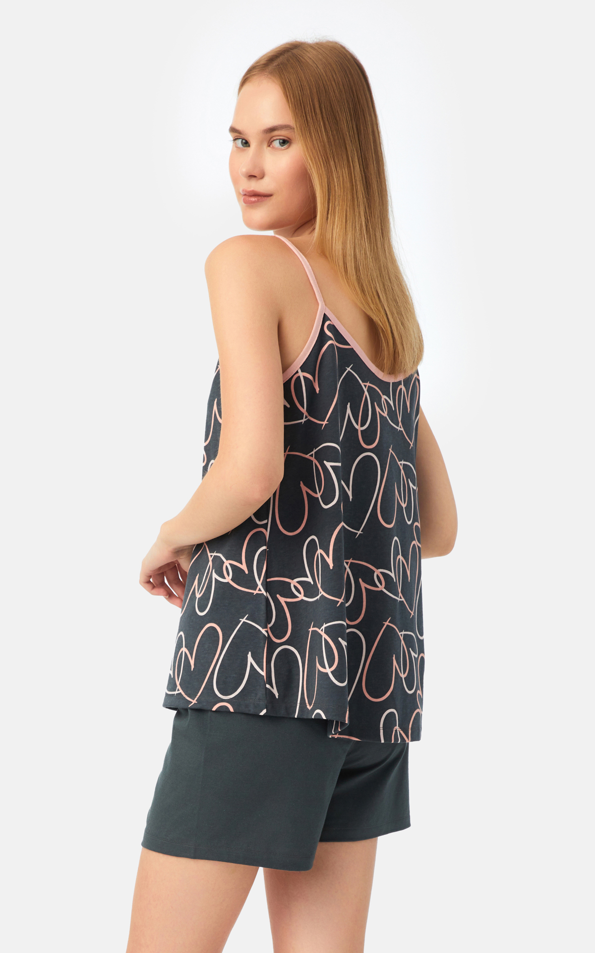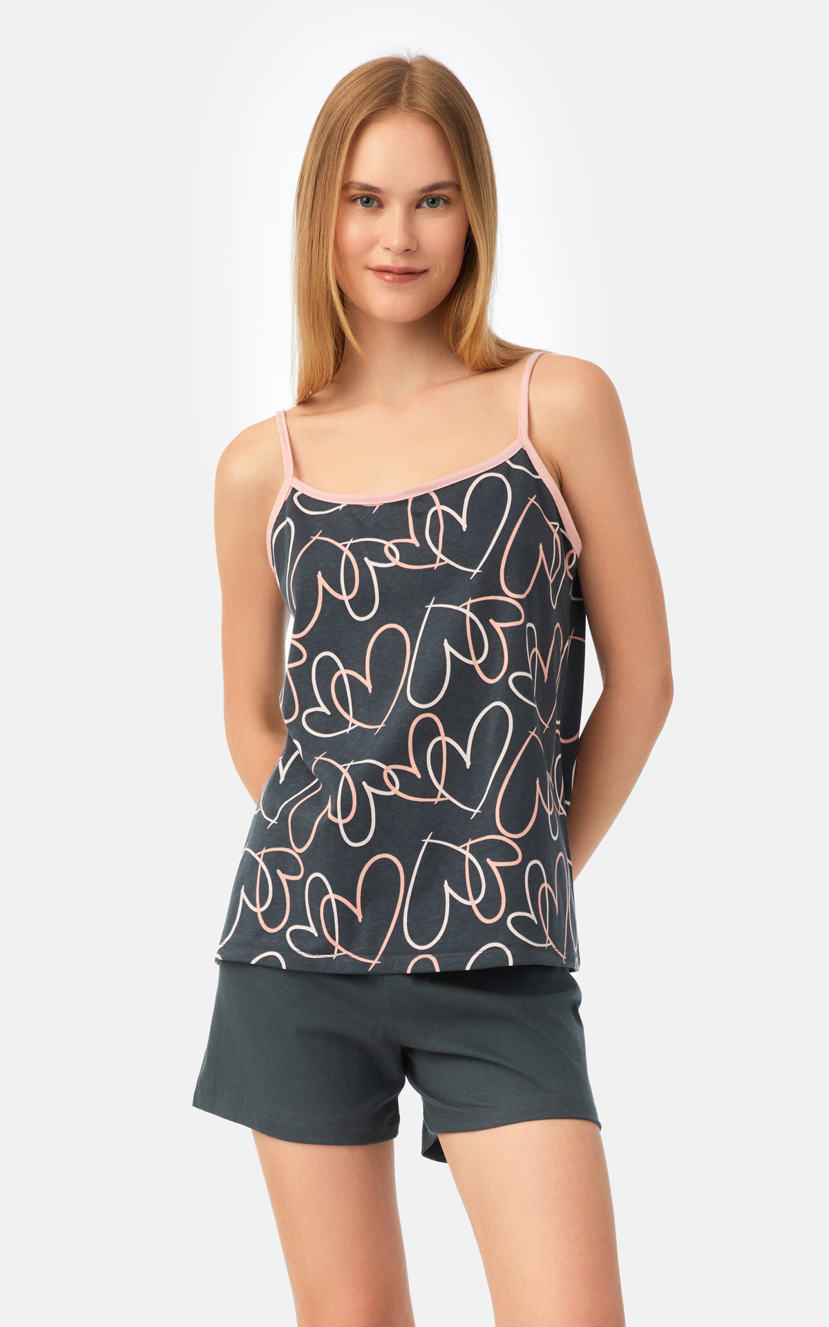 Σετ πυζάμας από 100% βαμβακερό ύφασμα εξαιρετικής ποιότητας.Το σετ αποτελείται από αμάνικο τοπ με μπριτέλα και σορτς. (Gray dark-pink a/o)