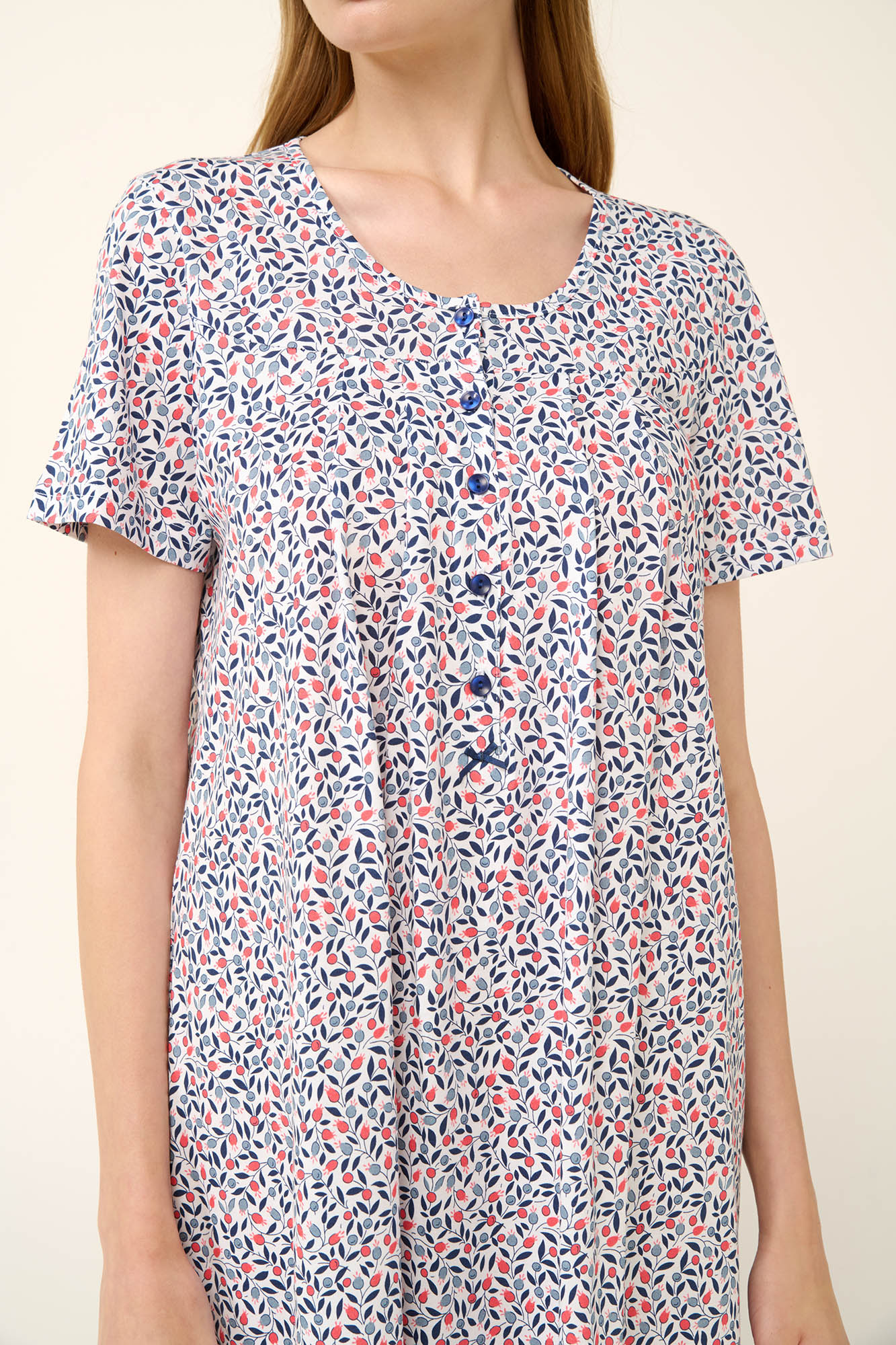 Γιορτάστε την ομορφιά της μητρότητας με ένα καλοκαιρινό νυχτικό εγκυμοσύνης και θηλασμού σε δροσερό φλοράλ μοτίβο. Σχεδιασμένο με πατιλέτα που διευκολύνει το θηλασμό και σούρες για μεγαλύτερη άνεση και χώρο στη περιοχή της κοιλιάς. Είναι κατασκευασμένο σε χαλαρή γραμμή από 100% διαπνέον βαμβάκι single jersey που θα σας βοηθήσει να χαλαρώσετε και να απολαύσετε κάθε στιγμή σε αυτό το γλυκό ταξίδι.