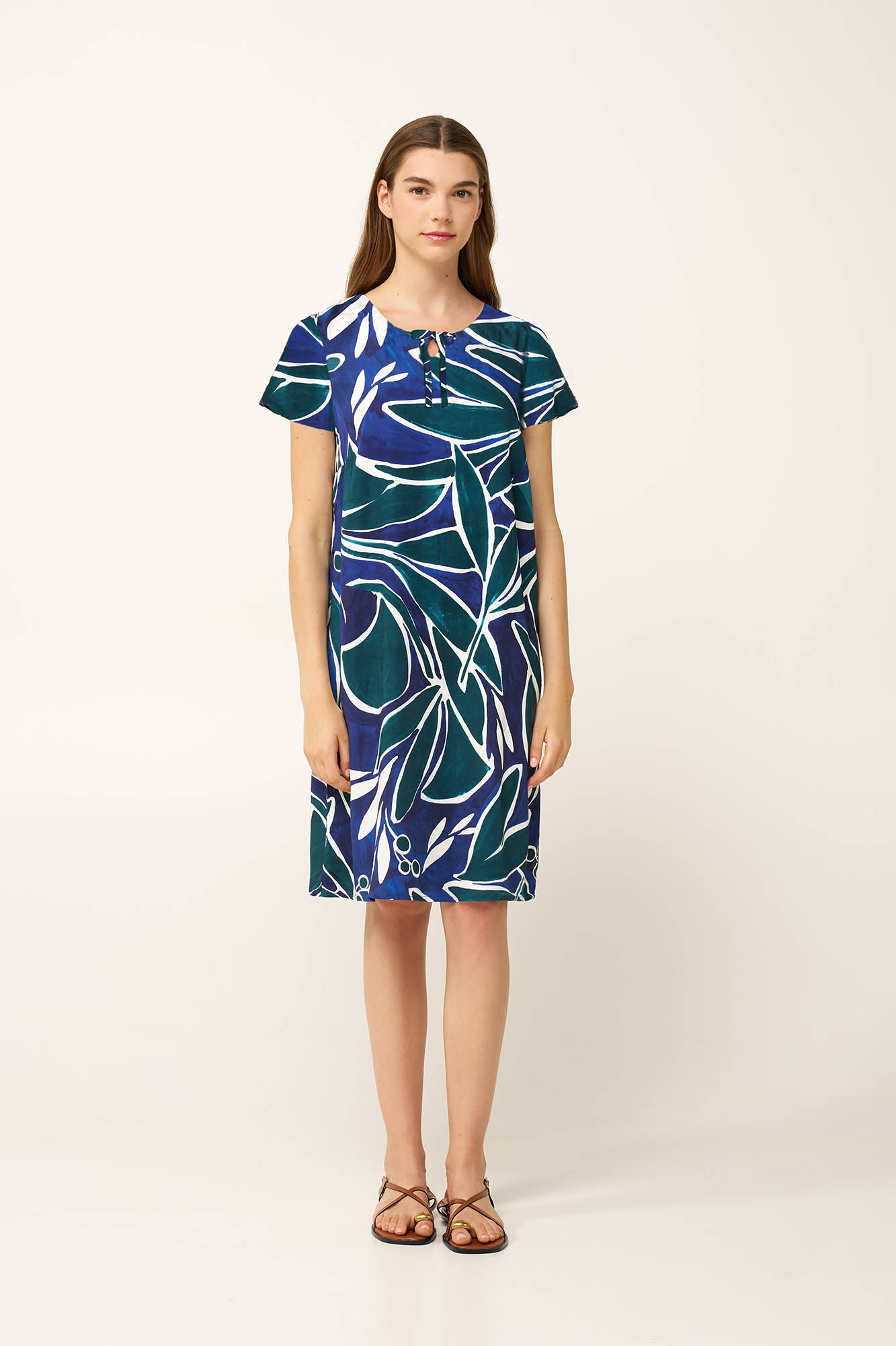 Αυτό το φόρεμα από 100% viscose ποπλίνα είναι μια σύγχρονη επιλογή για το καλοκαίρι, με απαλή υφή και άνετη αίσθηση τις ζεστές ημέρες. Η καθαρή γραμμή του το κάνει εύκολο να φορεθεί από το πρωί έως το βράδυ, ενώ το ελαφρύ ύφασμα κινείται φυσικά με το σώμα. Το έντονο γραφικό print με αφηρημένα σχήματα σε ωκεάνιους τόνους δίνει χαρακτήρα και φρεσκάδα. Ιδανικό για ηλιόλουστες ημέρες και χαλαρά απογεύματα, συνδυάζει άνεση και καλοκαιρινή κομψότητα
