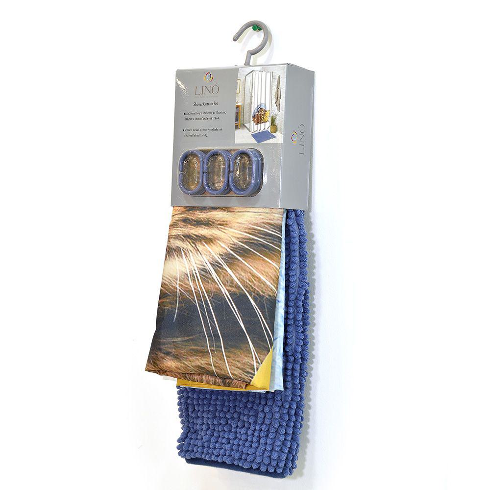 Κουρτίνα μπάνιου Gatto από τη νέα Bath Collection της εταιρείας Lino Home. Η κουρτίνα είναι διακοσμημένη με πρωτότυπο σχέδιο σε ζωηρά χρώματα που θα φωτίσουν και θα δώσουν χαρά σε κάθε μπάνιο. Η νέα συλλογή σε κουρτίνες μπάνιου, παρουσιάζει την ιδιαιτερότητα να έχει κρίκους χρωματικά ταιριαστούς με την κουρτίνα. Η νέα μας συλλογή σε κουρτίνες μπάνιου, είναι κατασκευασμένες από 100% αδιάβροχο πολυεστερικό ύφασμα προκειμένου και να στέκεται όμορφα κρεμασμένη στο χώρο αλλά και να προστατεύει το χώρο από τυχόν νερά που πετάγονται κατά τη διάρκεια του μπάνιου.