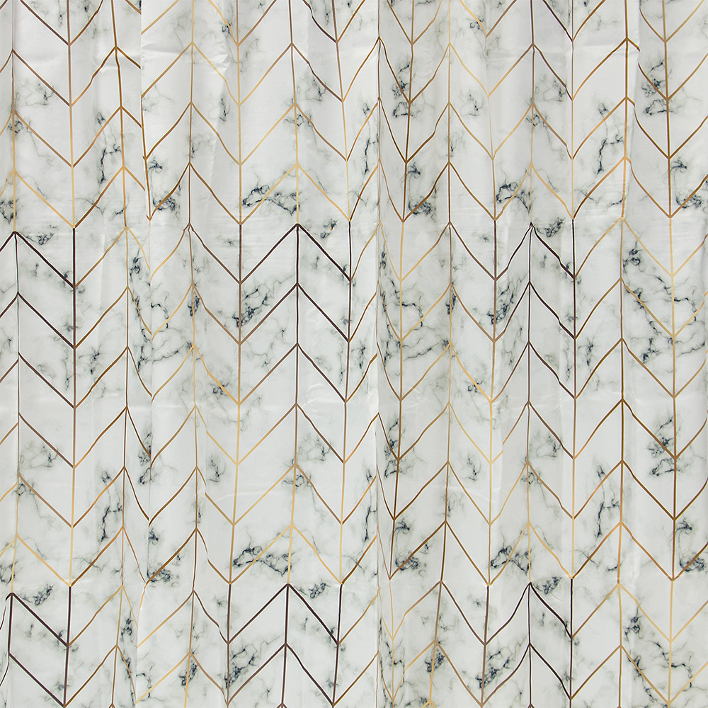Κουρτίνα μπάνιου Marmor από τη νέα Bath Collection της εταιρείας Lino Home. Η κουρτίνα είναι διακοσμημένη με πρωτότυπο σχέδιο σε ζωηρά χρώματα που θα φωτίσουν και θα δώσουν χαρά σε κάθε μπάνιο. Η νέα συλλογή σε κουρτίνες μπάνιου, παρουσιάζει την ιδιαιτερότητα να έχει κρίκους χρωματικά ταιριαστούς με την κουρτίνα. Η νέα μας συλλογή σε κουρτίνες μπάνιου, είναι κατασκευασμένες από 100% αδιάβροχο πολυεστερικό ύφασμα προκειμένου και να στέκεται όμορφα κρεμασμένη στο χώρο αλλά και να προστατεύει το χώρο από τυχόν νερά που πετάγονται κατά τη διάρκεια του πλυσίματος.