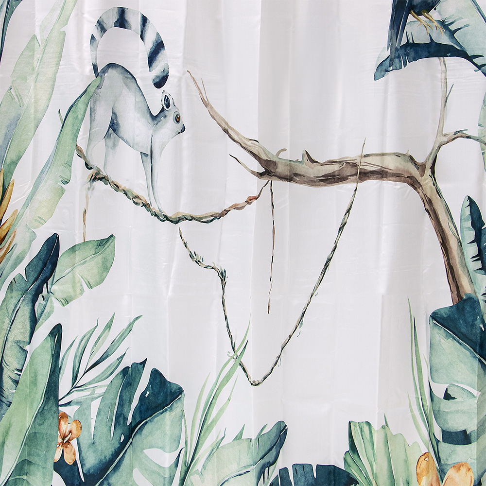 Περιλαμβάνει μία κουρτίνα μπάνιου με δώδεκα πλαστικούς κρίκους