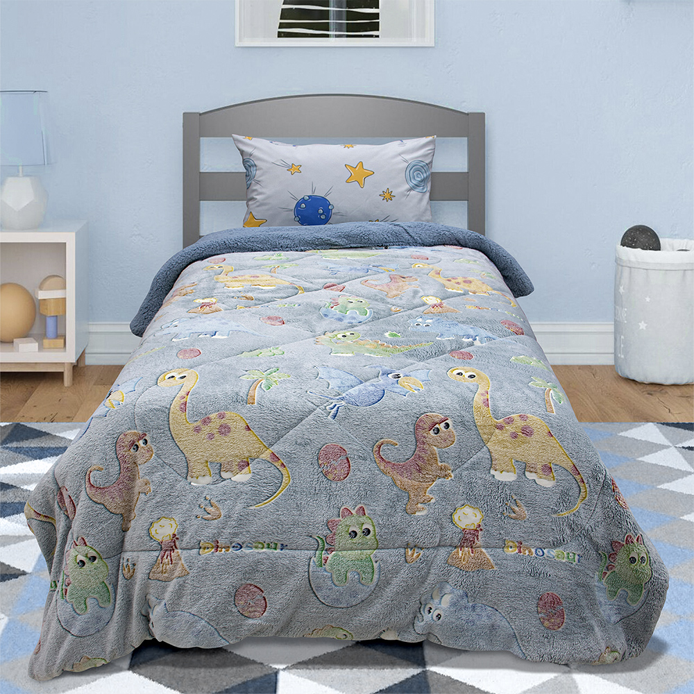Ανακαλύψτε την απόλυτη προσθήκη στο παιδικό δωμάτιο με το κουβερτοπάπλωμα Volcano που διαθέτει ένα μοναδικό φωσφοριζέ σχέδιο δεινοσαύρων. Κατασκευασμένο από υλικά υψηλής ποιότητας, απαλά και ζεστά, το κουβερτοπάπλωμα Volcano προσφέρει άνεση και χαρά στον μικρό σας εξερευνητή κατά τη διάρκεια του ύπνου. Οι φωσφοριζέ δεινόσαυροι ζωντανεύουν στο σκοτάδι, δημιουργώντας μια μαγευτική ατμόσφαιρα που θα κάνει τον ύπνο ακόμα πιο διασκεδαστικό. Εσωτερικά, το κουβερτοπάπλωμα διαθέτει απαλή sherpa.