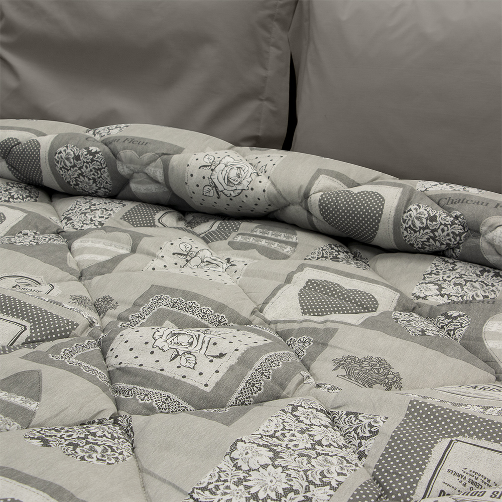 Πάπλωμα Clavel της εταιρείας Lino Home! To πάπλωμα Clavel διακρίνεται για το όμορφο σχέδιό του, καθώς διαθέτει ρομαντικό σχέδιο με λουλούδια και καρδούλες, ωστόσο το γκρι χρώμα, του δίνει μία μοντέρνα διάσταση. Η εξωτερική του ύφανση αποτελείται από 100% microsatin 120gsm,που το καθιστά πολύ απαλό και φιλικό στο δέρμα. Η ειδική επεξεργασία φινιρίσματος που δέχεται στη σύνθεσή του, το κάνει iron-free καθώς δεν τσαλακώνει κατά το πλύσιμό του. Όσον αφορά το εσωτερικό του γέμισμα, η ποιότητα είναι επίσης άριστη καθώς διαθέτει 3D σιλικονούχα ίνα 350 gsm/m2, οπότε έχουμε στο κρεβάτι μας ένα άκρως ζεστο και χουχουλιάρικο πάπλωμα.
