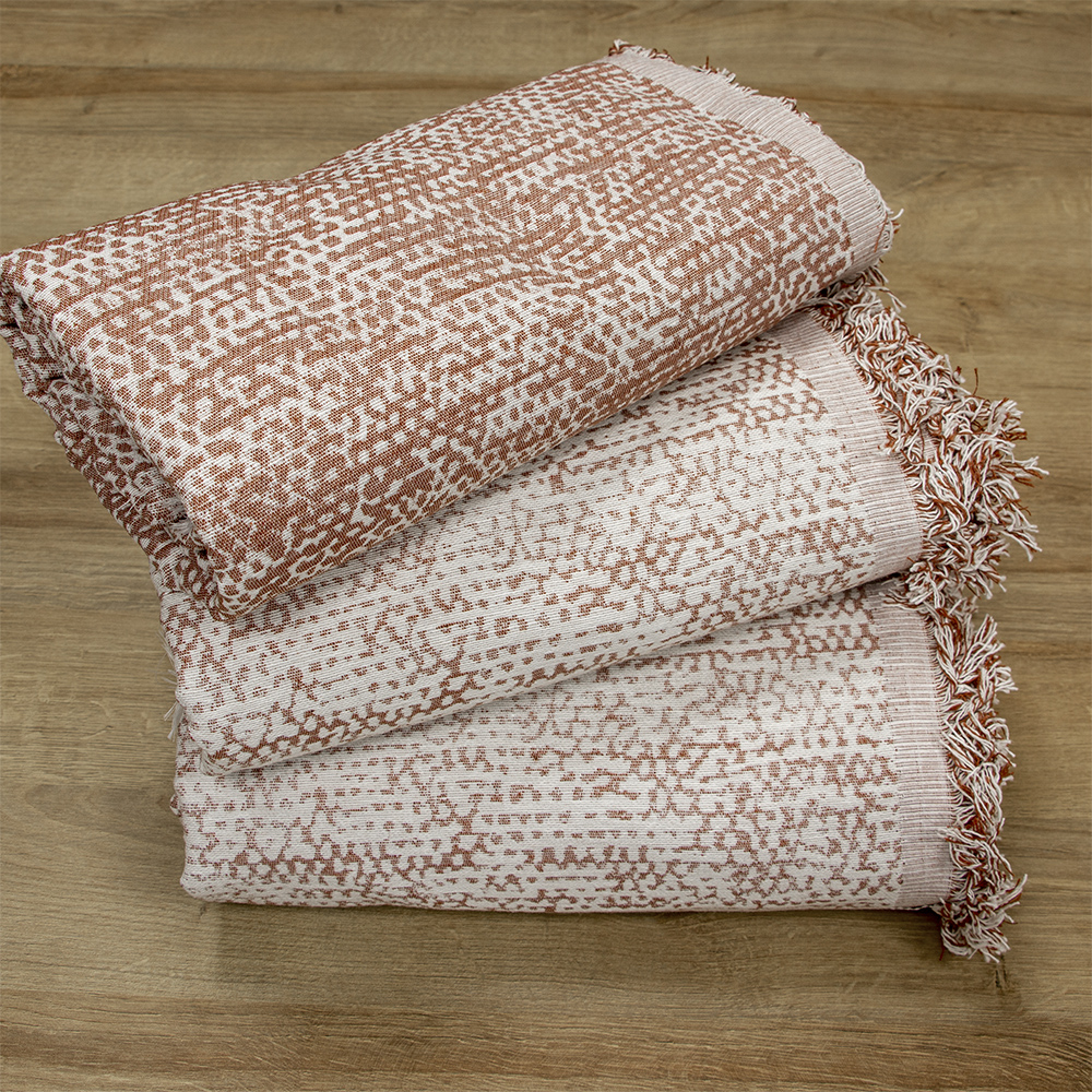 Το ριχτάρι Saphire συνδυάζει πρακτικότητα και στυλ καθώς είναι μια εξαιρετική επιλογή για τη διακόσμηση του καθιστικού ή του σαλονιού σας. Το ριχτάρι Saphire είναι διπλής όψης, δίνοντάς σας τη δυνατότητα να επιλέξετε την πλευρά που ταιριάζει καλύτερη στη διάθεση και τον χώρο σας. Με σύνθεση κυρίως βαμβακερή, προσφέρει ιδανική αίσθηση απαλότητας και αντοχή στη χρήση. Η επιφάνεια του ριχταριού είναι διακοσμημένη από ένα μοτίβο που θυμίζει ψηφιδωτό και οι άκρες του διαθέτουν κρόσια, στοιχεία που προσθέτουν μια εκλεπτυσμένη πινελιά με φυσικό και κομψό χαρακτήρα. Δώστε νέα πνοή στο σαλόνι σας και μια πινελιά πολυτέλειας στο χώρο σας.