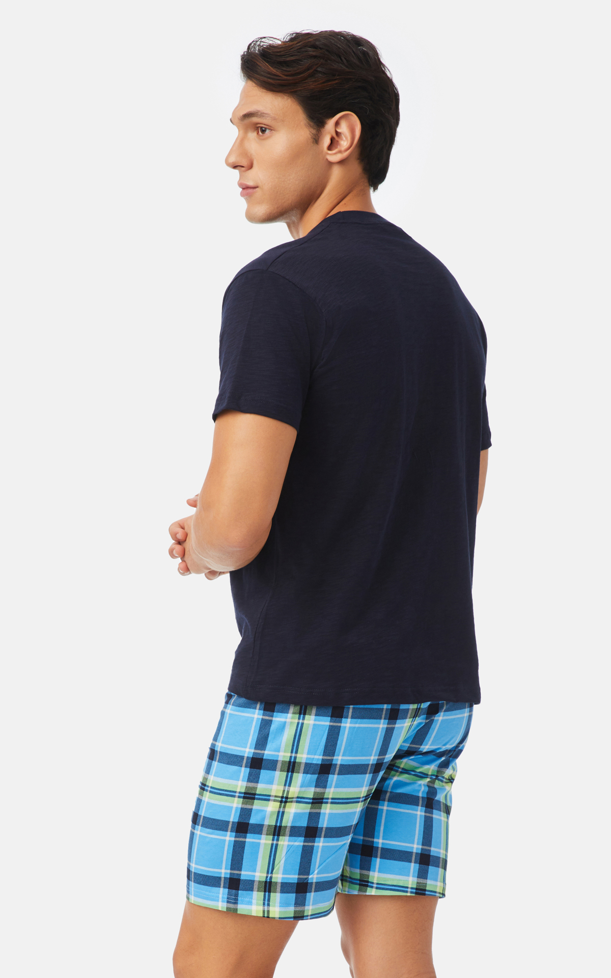 Σετ πυζάμας από 100% βαμβάκι, φλάμα, εξαιρετικής ποιότητας. Το σετ αποτελείται από κοντομάνικο τοπ με στρογγυλή λαιμούδια,τύπωμα στο στήθος και καρό σόρτς. (Μαριν)