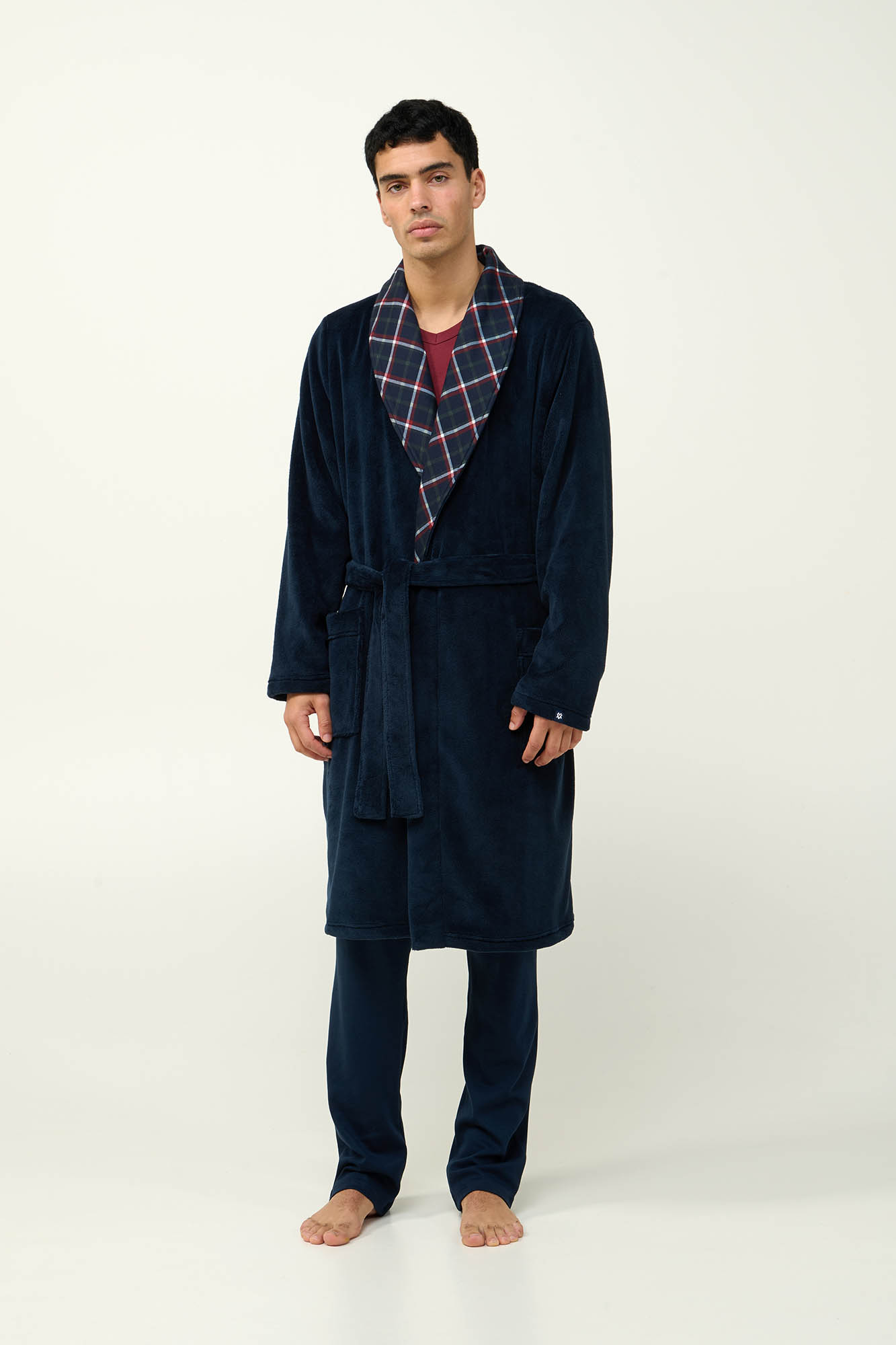 Αυτή η ανδρική μακριά ρόμπα συνδυάζει διαχρονικό στυλ με απόλυτη άνεση. Κατασκευασμένη από απαλό, ζεστό fleece, διαθέτει κλασικό σταυρωτό σχέδιο που δένει στη μέση με ζώνη για σταθερή εφαρμογή. Οι τσέπες προσθέτουν πρακτικότητα, ενώ το φαρδύ πέτο με καρό μοτίβοε ενισχύει το διαχρονικό της χαρακτήρα. Ιδανική για χαλαρές στιγμές στο σπίτι, δε πρέπει να λείπει από μια ανδρική γκαρνταρόμπα