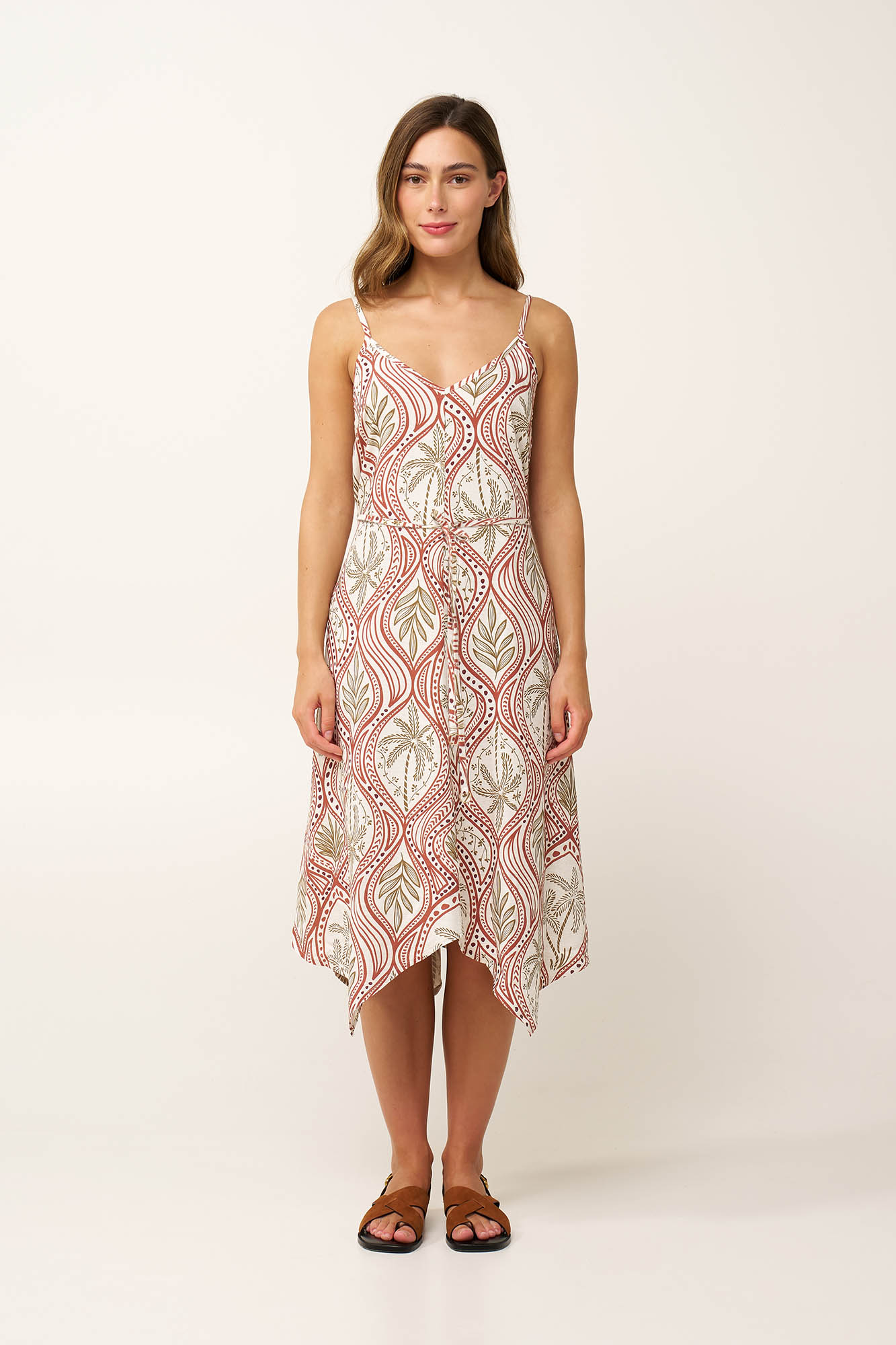 Ανακαλύψτε ένα καλοκαιρινό φόρεμα που συνδυάζει την άνεση με τη φυσική κομψότητα. Είναι κατασκευασμένο από 80% βισκόζη και 20% λινό, προσφέροντας δροσερή και ανάλαφρη αίσθηση. Είναι σχεδιασμένο με λεπτές τιράντες που προσθέτουν θηλυκότητα και επιτρέπουν πλήρη ελευθερία κινήσεων. Ιδανικό για τις στιγμές σας στην παραλία ή τις καλοκαιρινές σας βόλτες.