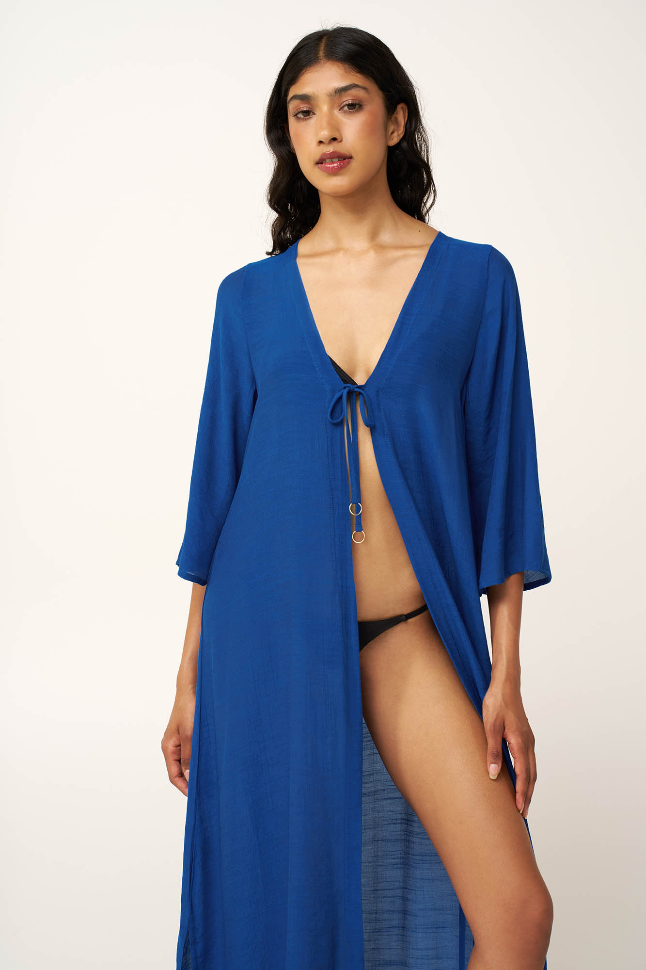 Αφεθείτε στον ρυθμρό του καλοκαιριού με αυτό το maxi φόρεμα θαλάσσης από αέρινο μείγμα γάζας με ανάγλυφη υφή. Ελαφρώς τσαλακωμένο με διακριτική διαφάνεια, είναι σχεδιασμένο με φαρδιά μανίκια και χαλαρή γραμμή, κινείται όμορφα σε κάθε σας βήμα. Δέστε το στο στήθος ή φορέστε το ανοιχτό πάνω από το μαγιό από το πρωί στη παραλία μέχρι το ηλιοβασίλεμα.