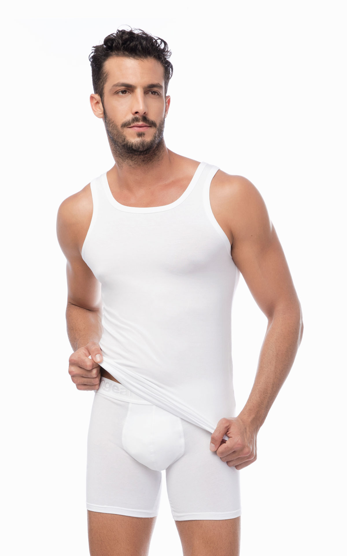 Aνδρική αμάνικη φανέλα, λεπτή φάσα στη λαιμόκοψη, slim γραμμή, κατασκευασμένη από 95% ίνα TENCEL™ Modal και 5% elastane, διατηρεί το χρώμα και το σχήμα, εξασφαλίζοντας διαρκή ποιότητα και άνεση. Έχει πολύ απαλή, μεταξένια υφή και προσφέρει την απόλυτη εφαρμογή σε όλους τους σωματότυπους. Δεν ξεθωριάζει και δεν συρρικνώνεται. (Λευκο)