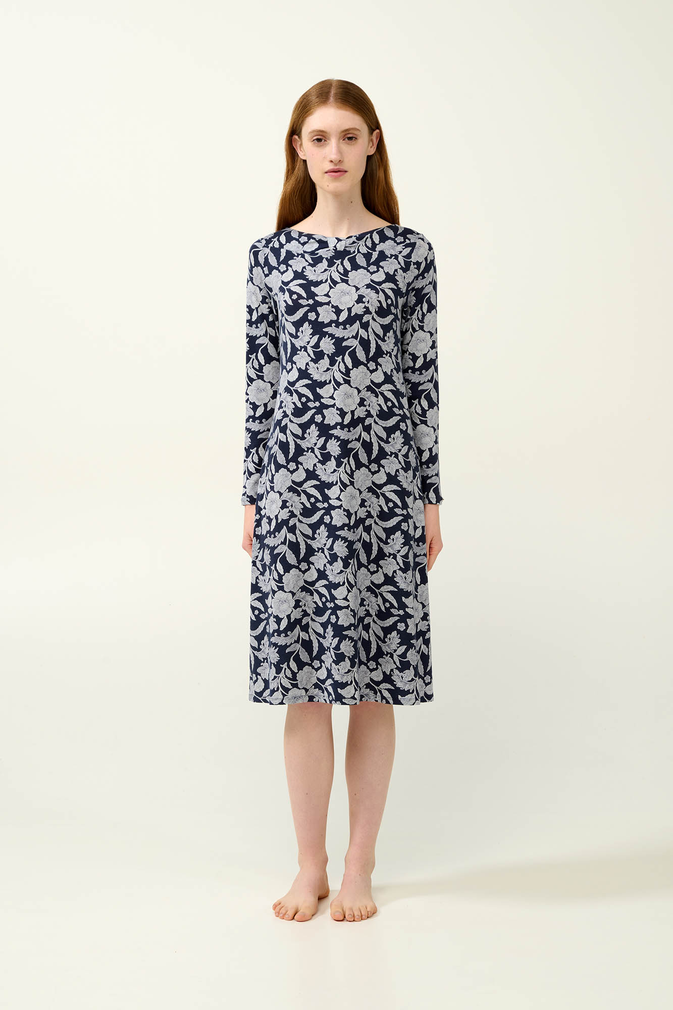 Προσθέστε μια ρομαντική νότα στη συλλογή σας με ένα νυχτικό που συνδυάζει κομψότητα και άνεση. Είναι κατασκευασμένο από διαπνέον LENZING Tencel Modal Micro, με εξαιρετικά απαλή υφή στο σώμα. Είναι σχεδιασμένο σε λευκό φλοράλ μοτίβο, με μακριά μανίκια και φαρδιά λαιμόκοψη, προσφέροντας άνεση χωρίς περιορισμούς. Ιδανικό αποαλαύσετε τις στιγμές χαλάρωσης σας.