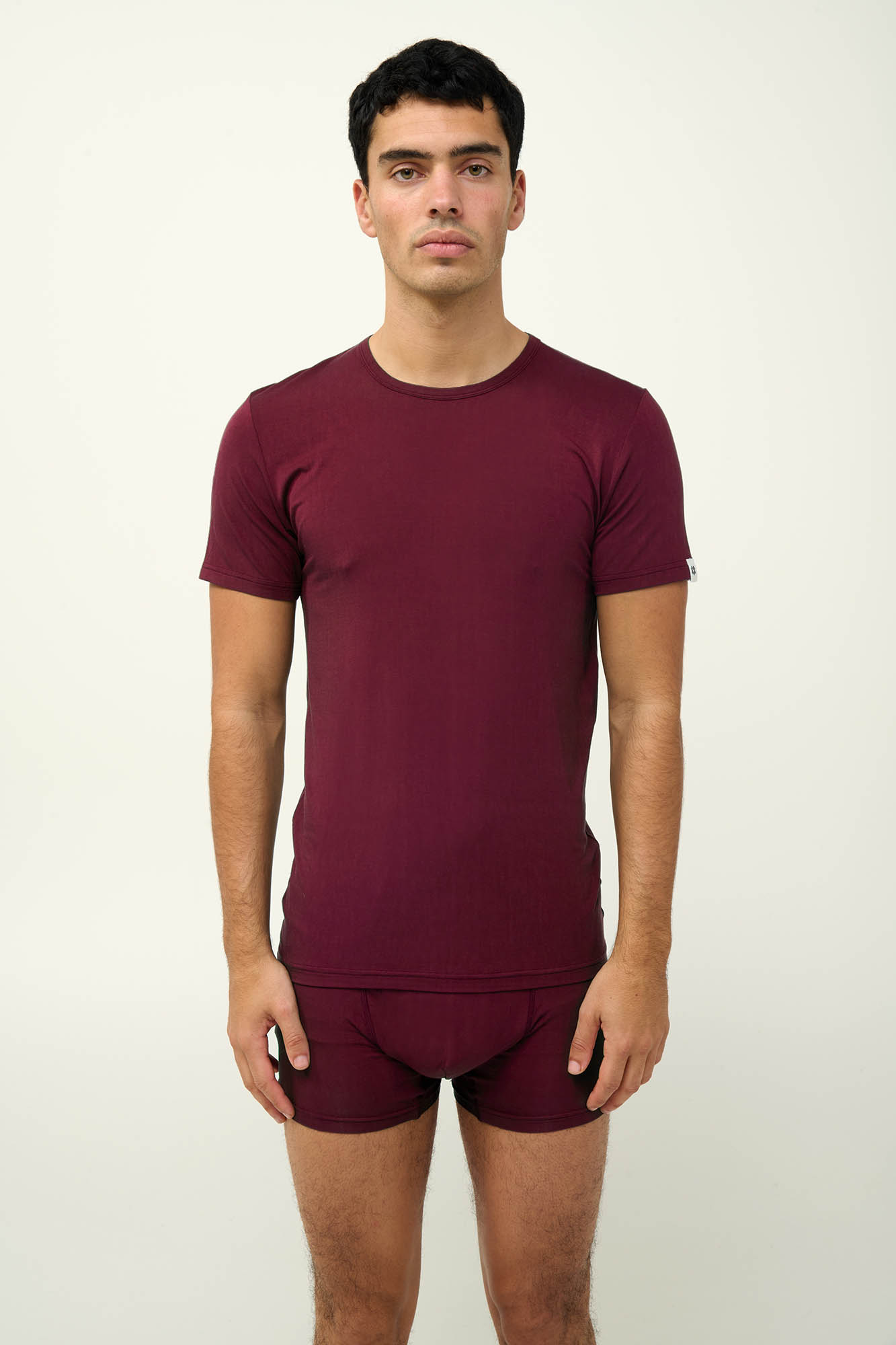 Προσθέστε στη συλλογή σας ένα μονόχρωμο ανδρικό φανελάκι με κοντά μανίκια και στρογγυλή λαιμόκοψη. Είναι κατασκευασμένο από απαλό LENZING Tencel Modal Micro που προσφέρει απαλή και διαπνέουσα αίσθηση στο δέρμα. Αγκαλιάζει ευχάριστα το σώμα και είναι ιδανικό για layering ή στιγμές χαλάρωσης στο σπίτι.