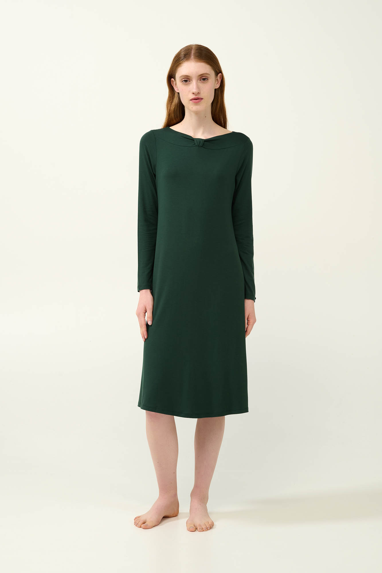 Επιλέξτε ένα χειμερινό νυχτικό που συνδυάζει άνεση και ποιότητα. Είναι κατασκευασμένο από LENZING Tencel Modal Micro, ένα ύφασμα που αγκαλιάζει ευχάριστα το σώμα ενώ επιτρέπει στο δέρμα να αναπνέει. Είναι σχεδιασμένο με μακριά μανίκια και στρογγυλή λαιμόκοψη, προσθέτοντας κομψότητα στις στιγμές χαλάρωσης σας. Ένα διαχρονικό μονόχρωμο σχέδιο που δε πρέπει να λείπει από την ντουλάπα σας.