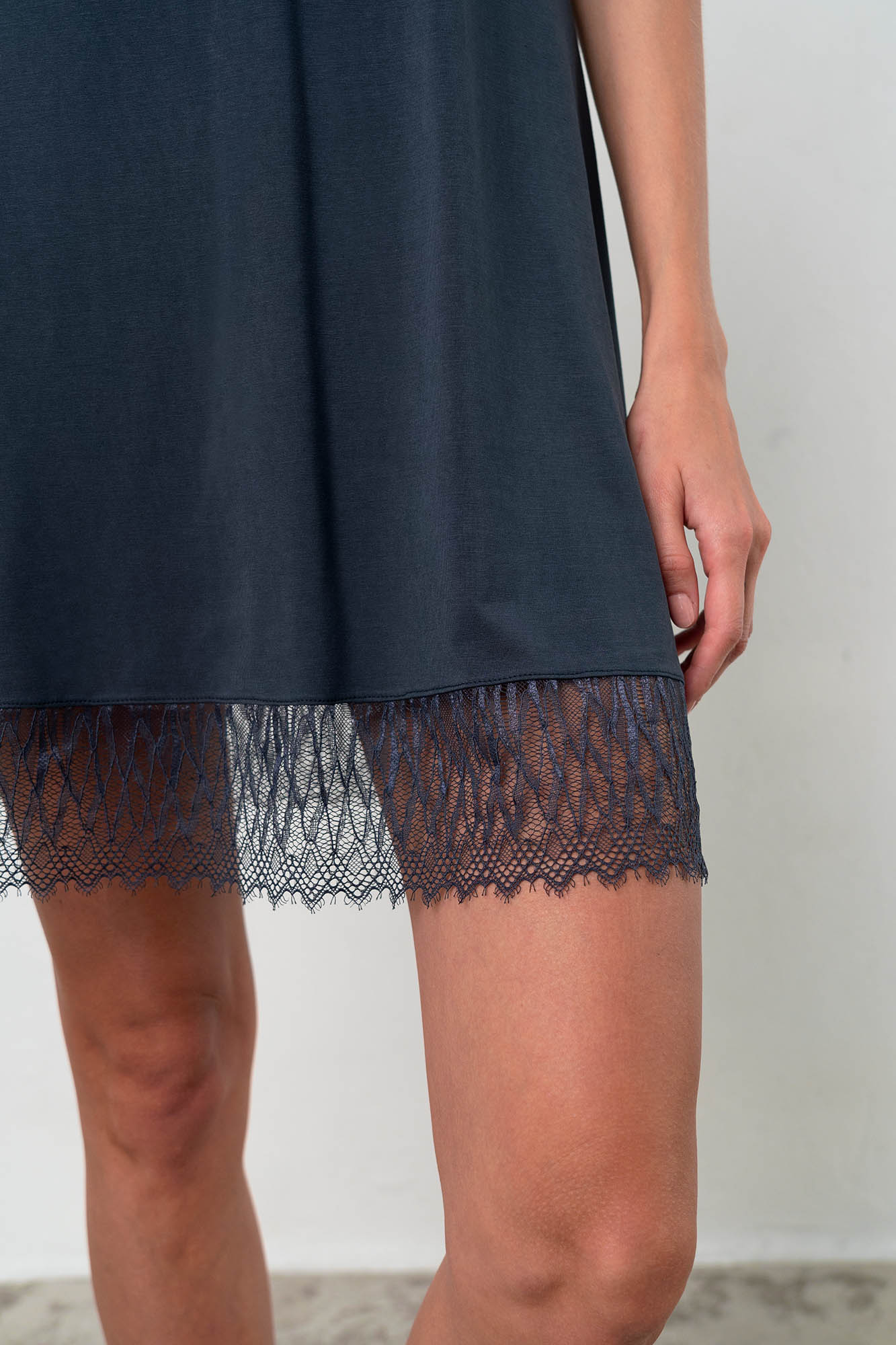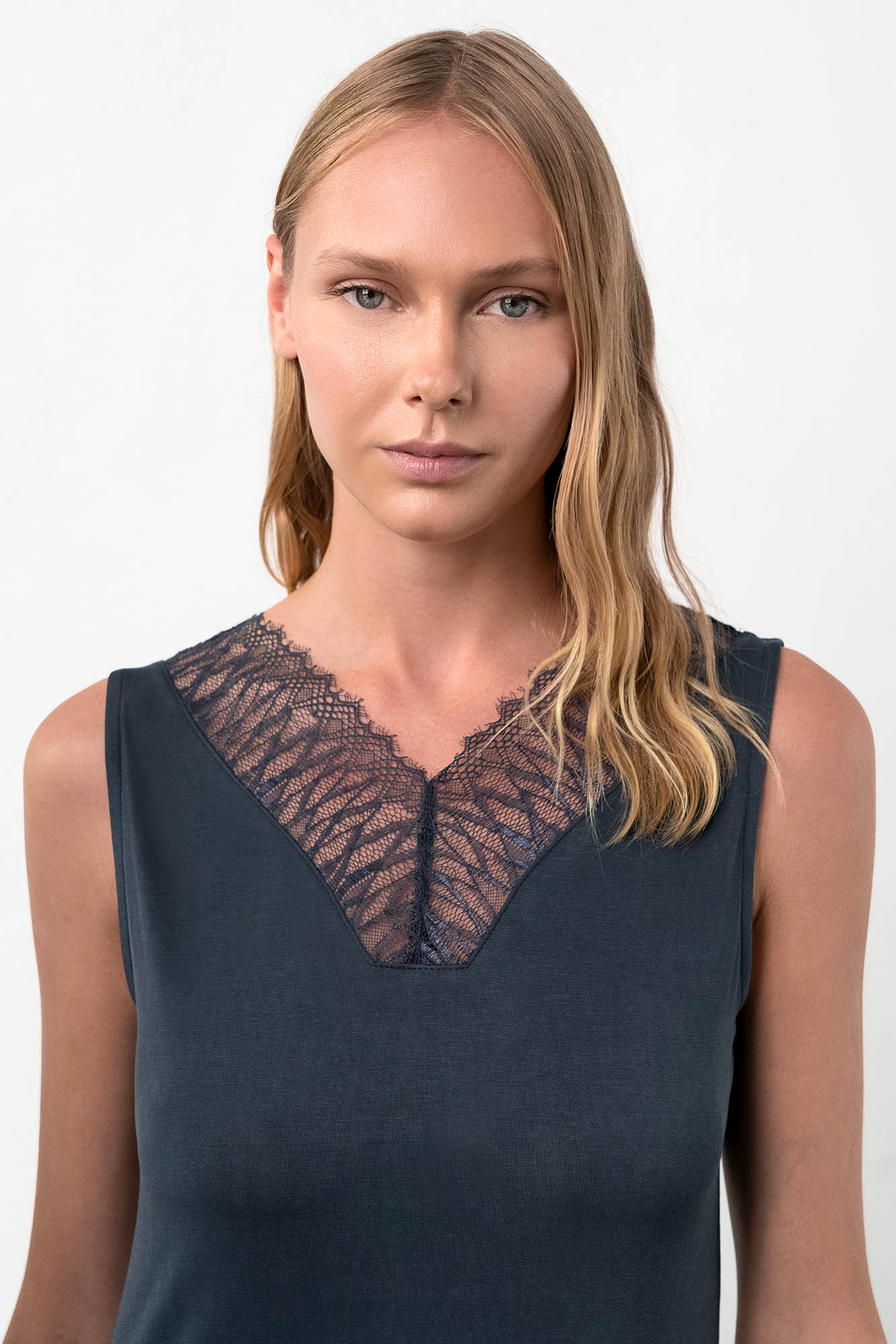 Μονόχρωμο, αμάνικο νυχτικό με δαντέλα στο τελείωμα και στη λαιμόκοψη. Μια κλασική επιλογή που θα σας δώσει την άνεση και τη κομψότητα που σας αξίζει.