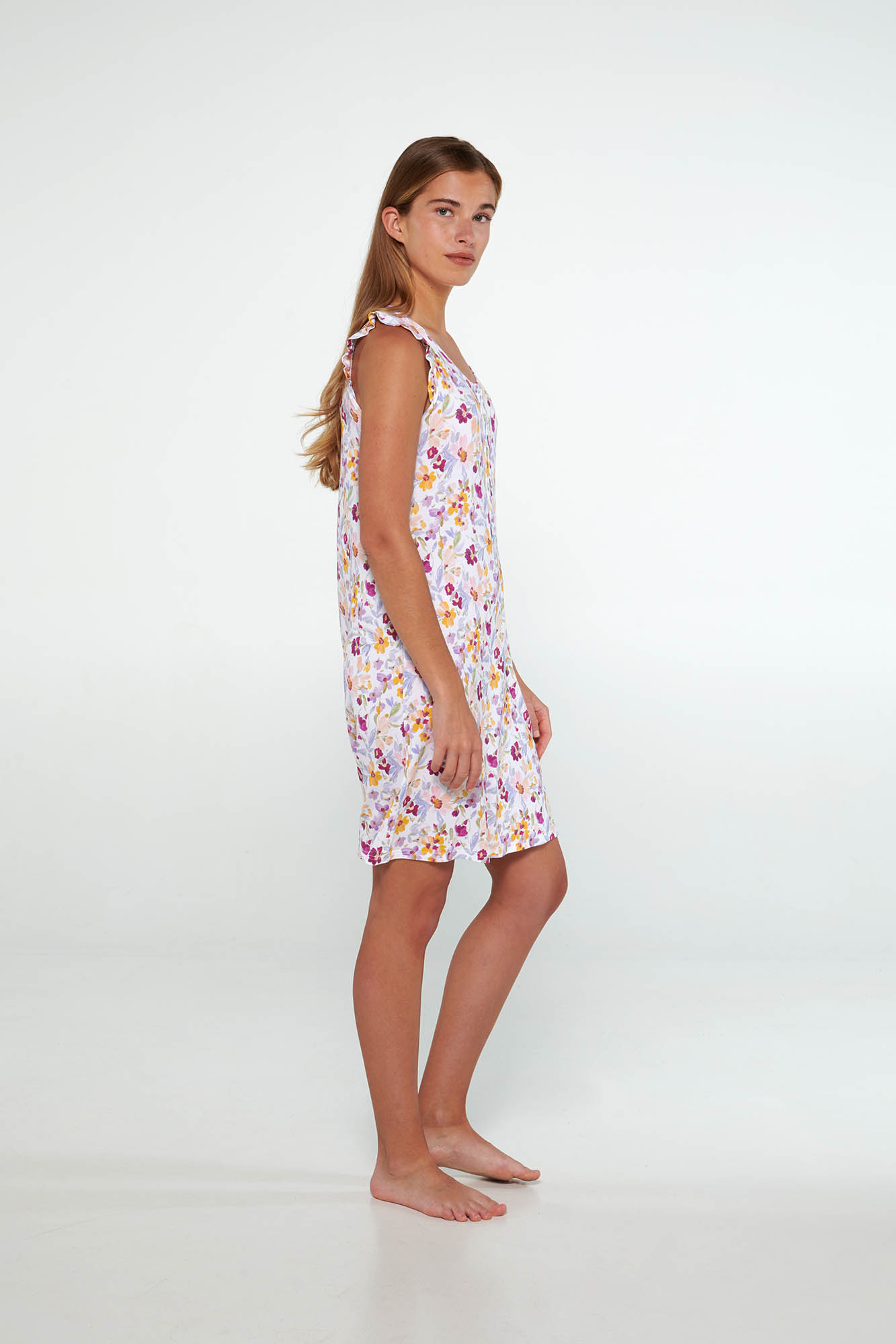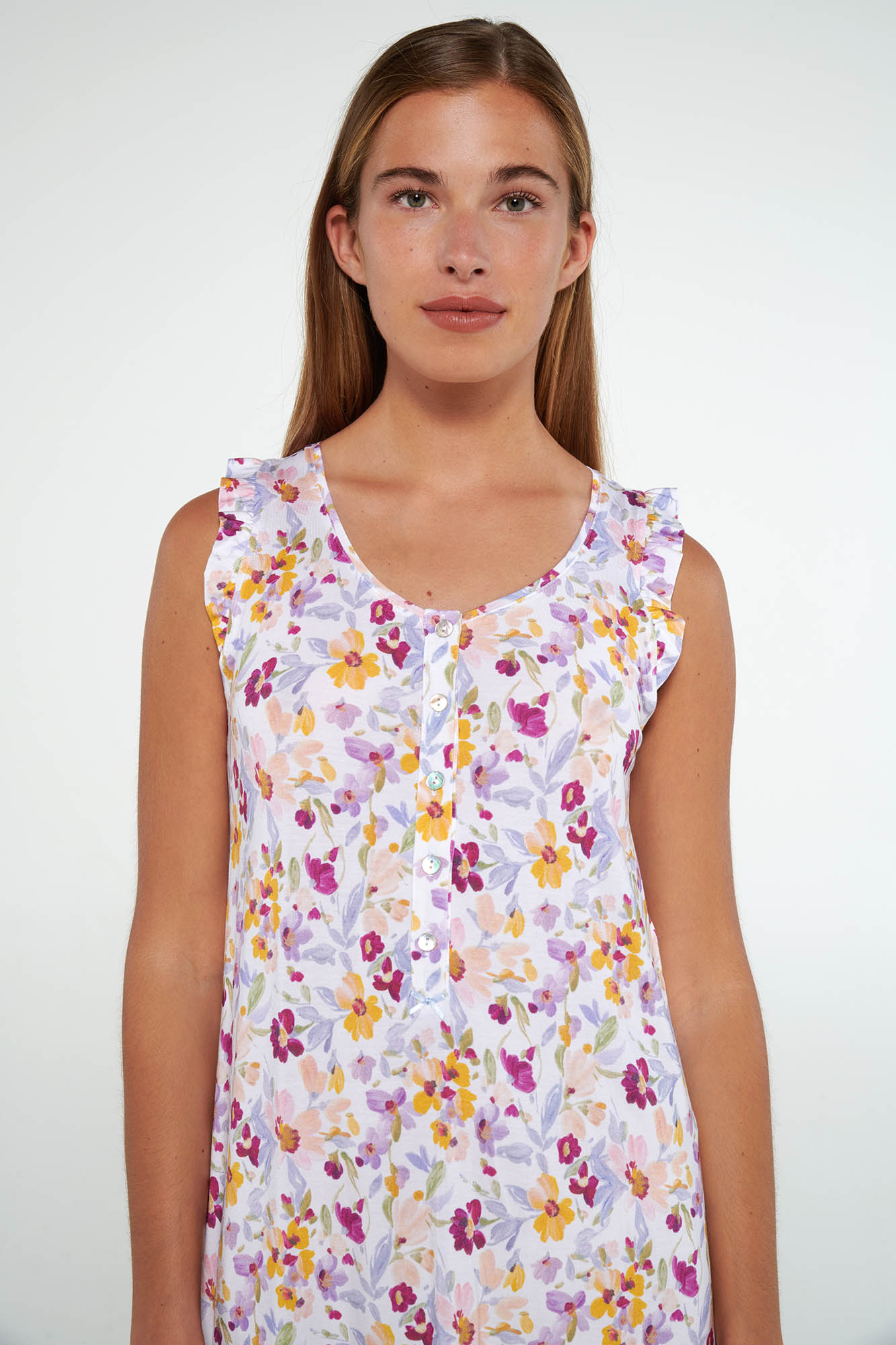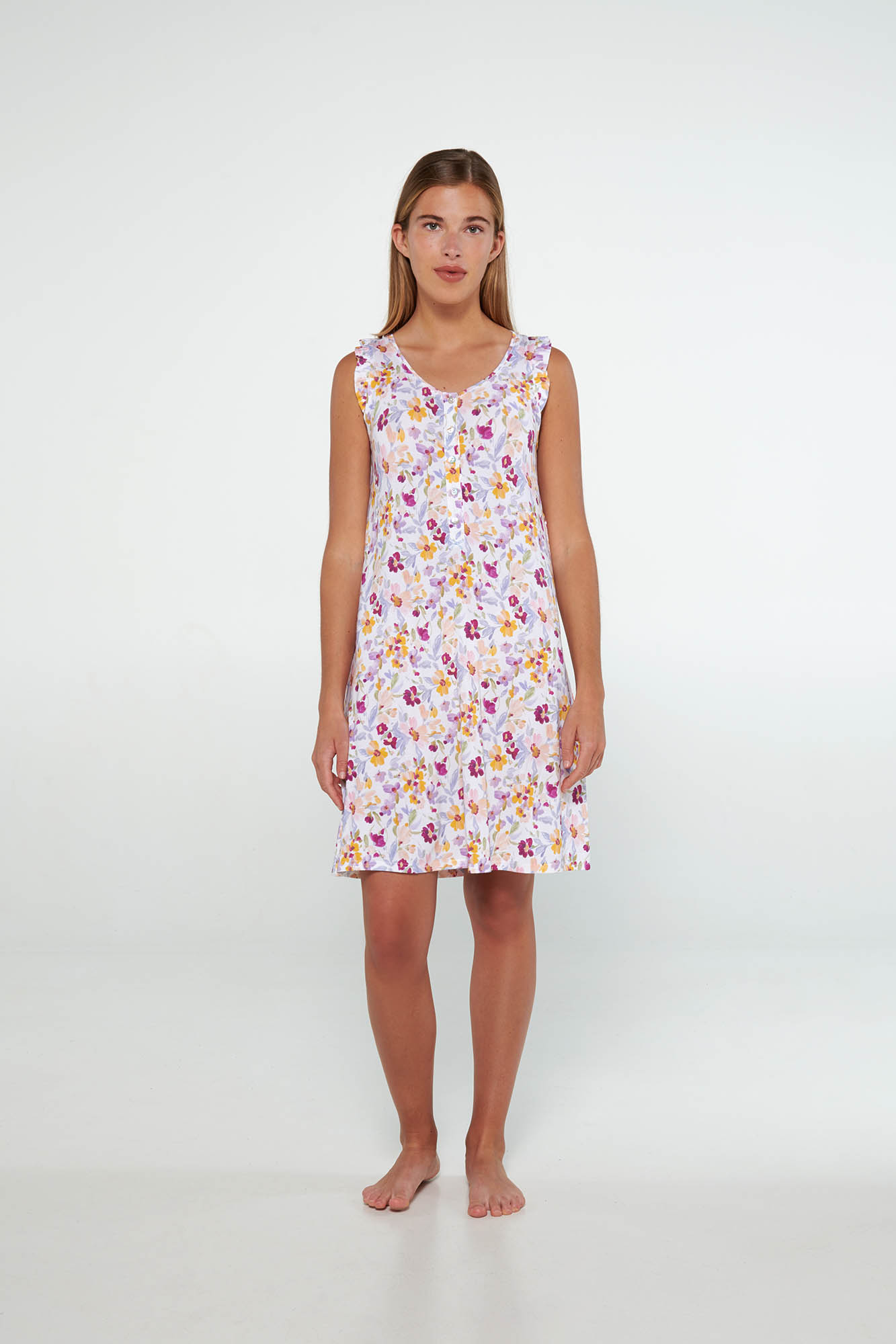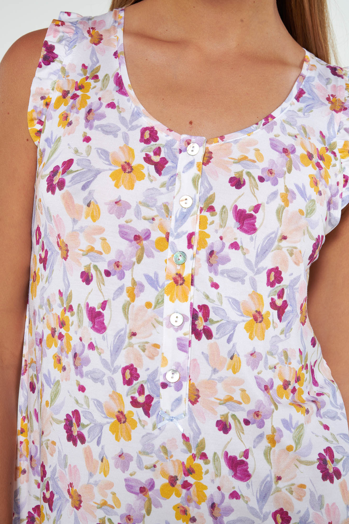 Αμάνικο νυχτικό με πατιλέτα σε άνετη γραμμή. Μια φωτεινή, φλοράλ πρόταση για τις ζεστές καλοκαιρινές ημέρες.