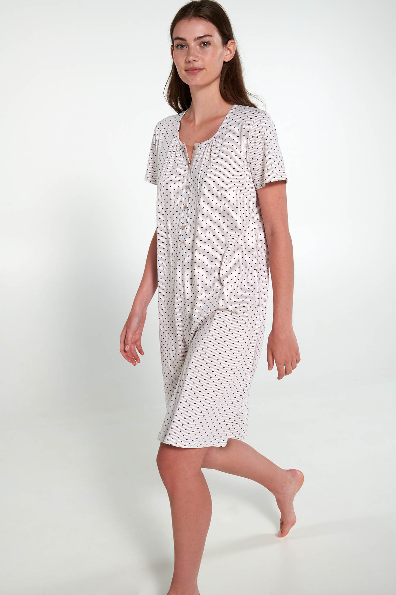 Εμπριμέ, νυχτικό με πατιλέτα σε χαλαρή γραμμή. Μια ανάλαφρη επιλογή για κάθε στιγμή της ημέρας σας.