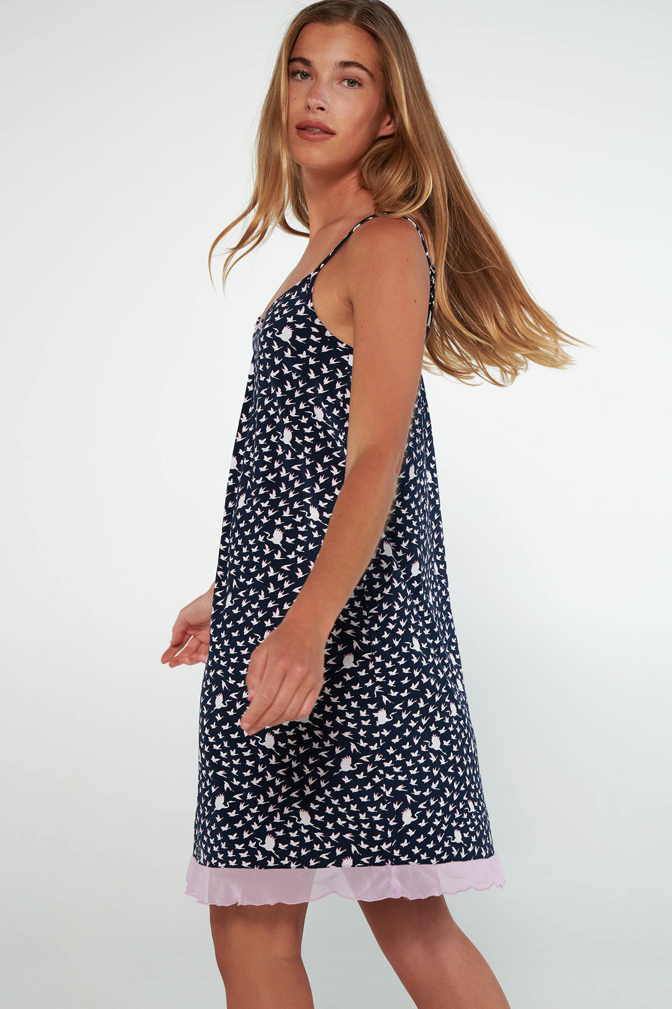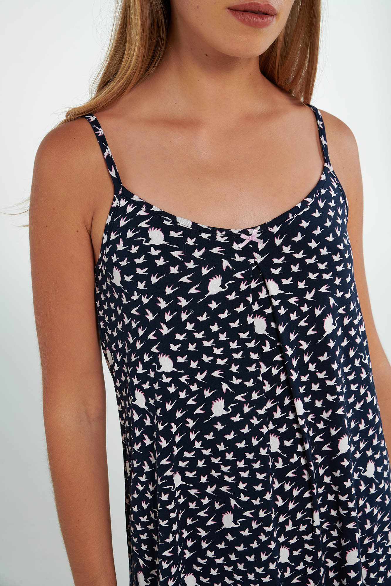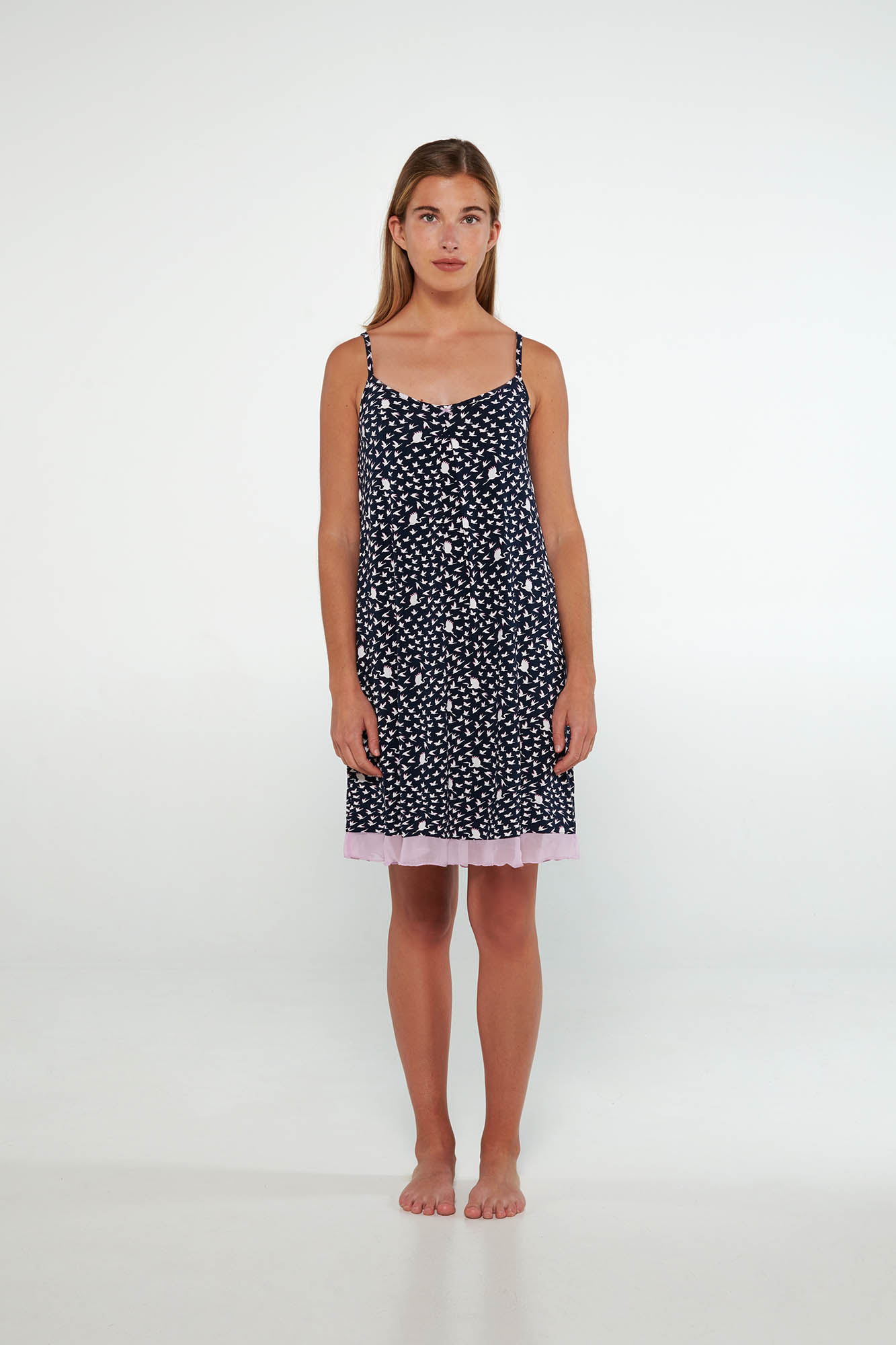 Νυχτικό με τιράντες και ανοιχτή λαιμόκοψη σε χαλαρή γραμμή. Φτιαγμένο από απαλό ύφασμα, θα δώσει άνεση σε κάθε στιγμή της ημέρας σας.