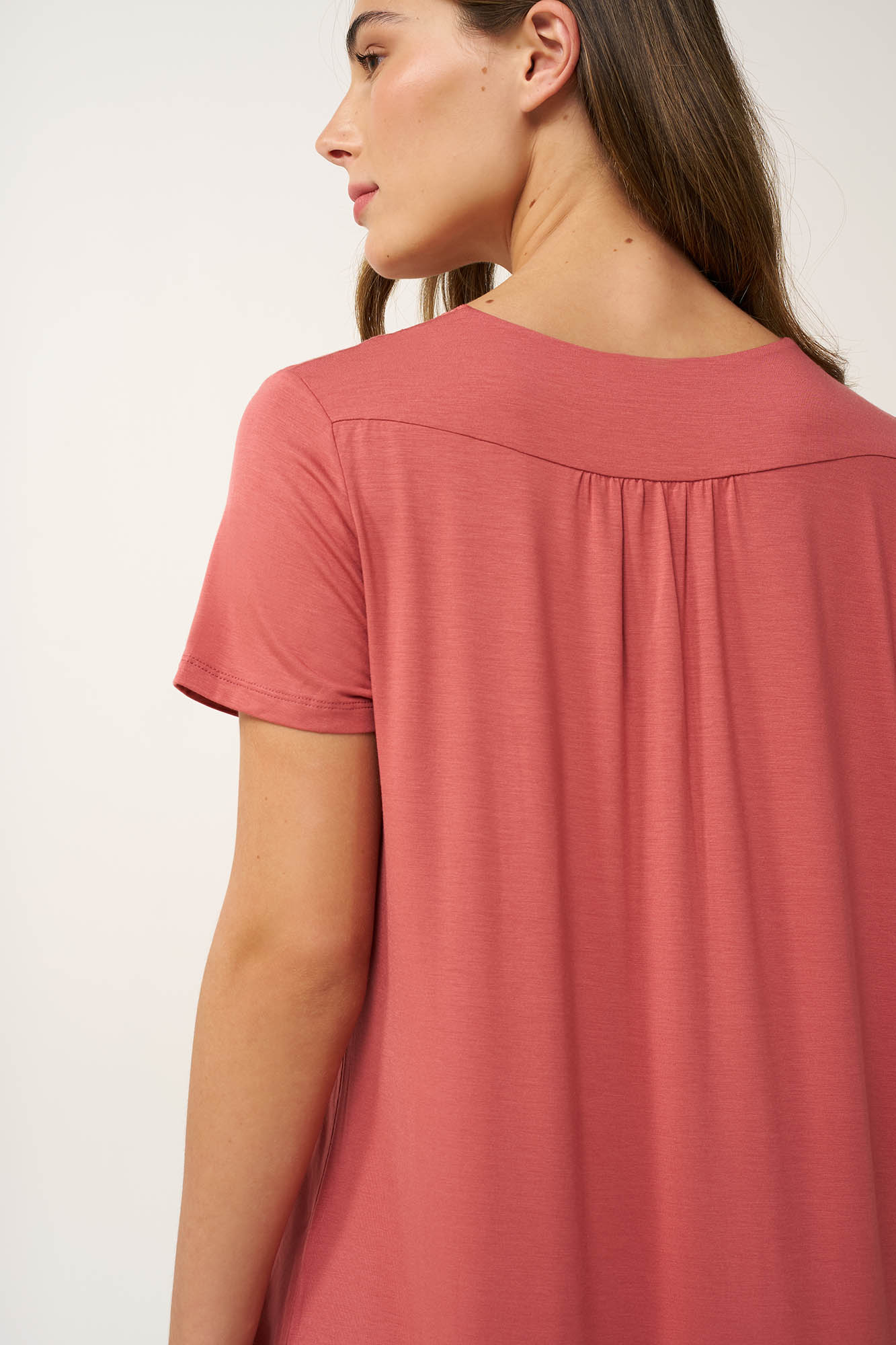 Χαλαρώστε και ανανεωθείτε με αυτό το απαλό και διαπνέον καλοκαιρινό νυχτικό, κατασκευασμένο από LENZING Tencel Modal Micro με elastane για άνετη εφαρμογή. Σχεδιασμένο για ζεστές καλοκαιρινές νύχτες, διαθέτει κοντά μανίκια και ανάλαφρη αίσθηση που ακολουθεί φυσικά την κίνηση του σώματος. Η λεπτή δαντέλα στη λαιμόκοψη προσθέτει μια ρομαντική πινελιά, ενώ τοι διακριτικές σούρες ενισχύουν την άνεση και τη ελευθερία κινήσεων. Κομψό αλλά και θηλυκό, αποτυπώνει τη γοητεία του σύγχρονου ρομαντισμού.