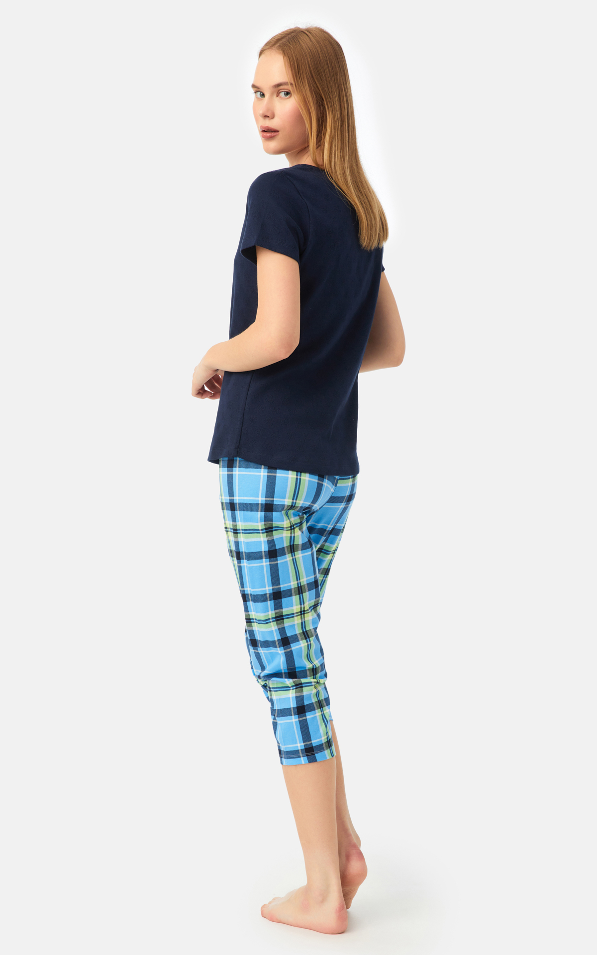 Σετ πυζάμας από 100% βαμβακερό ύφασμα, εξαιρετικής ποιότητας. Το σετ αποτελείται από κοντομάνικο τοπ, rib pointelle με πατιλέτα και κάπρι παντελόνι στη μέση της γάμπας, τυπωμένο all over. (Μαριν)