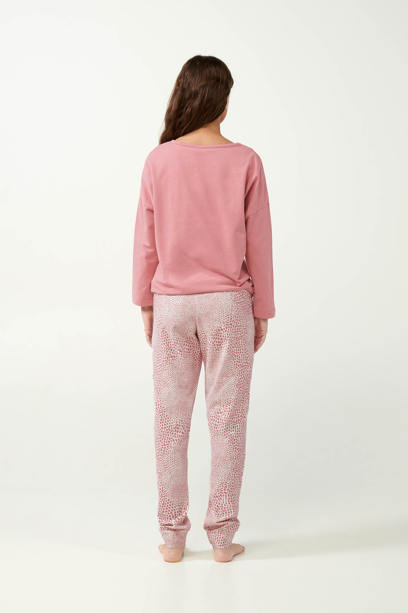 Προσθέστε στη συλλογή σας ένα σετ γυναικείες πυτζάμες σε ροζ αποχρώσεις. Το σετ αποτελείτε από παντελόνι με μανσέτες σε λεοπάρ μοτίβο που συνδυάζεται αρμονικά με ένα μονόχρωμο τοπ. Κατασκευασμένο από 100% βαμβάκι φούτερ θα προσφέρει ζεστή αίσθηση και άνετη εφαρμογή στο σώμα σας. Ένας όμορφος συνδυασμός άνεσης και νεανικής κομψότητας που θα σας κρατήσει ζεστή όλο το χειμώνα.