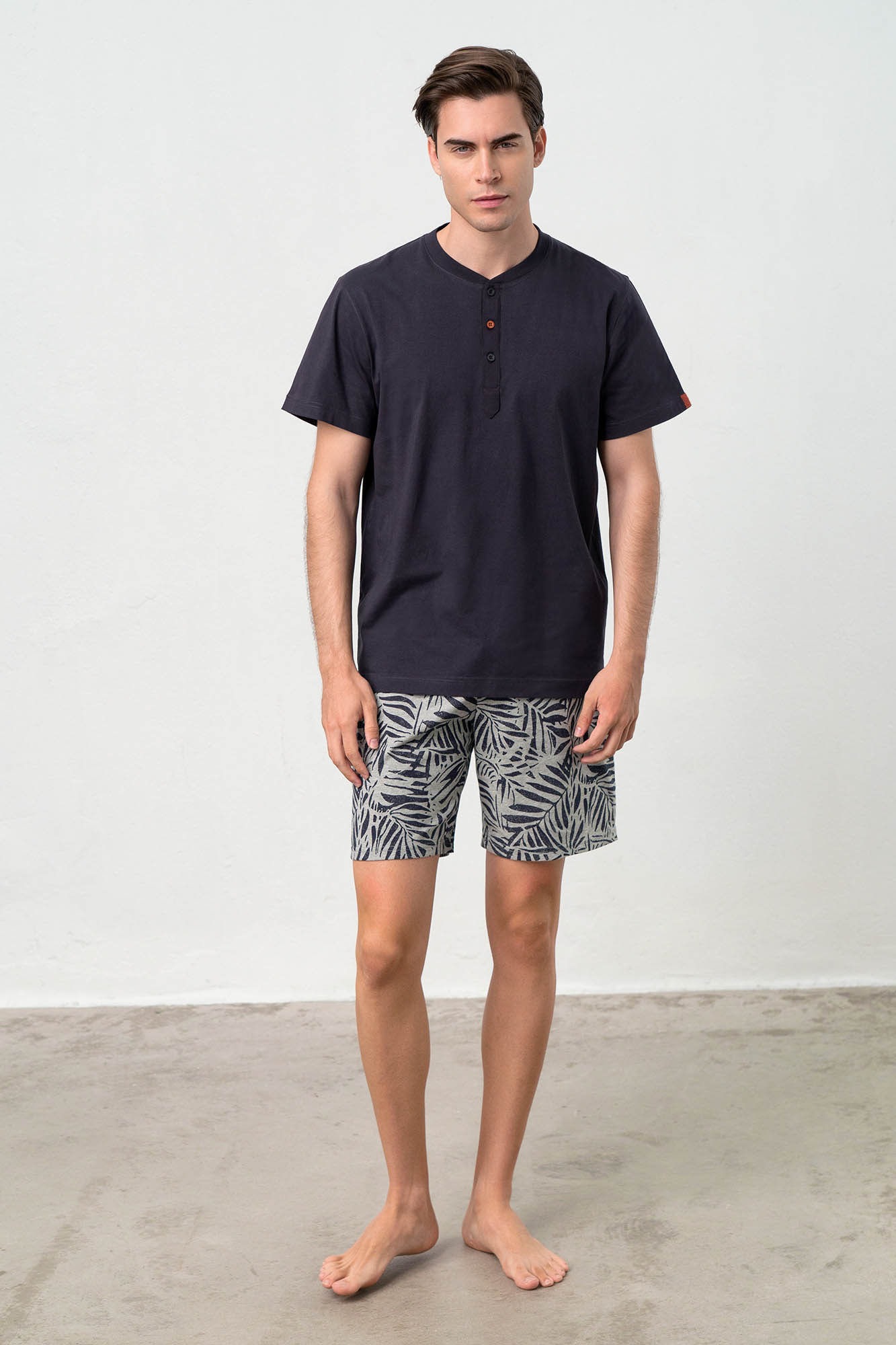 Ανδρική πυτζάμα με πατιλέτα και κοντό, εμπριμέ παντελόνι. Φτιαγμένη από δροσερό, απαλό βαμβάκι, θα δώσει άνεση όλη την ημέρα.