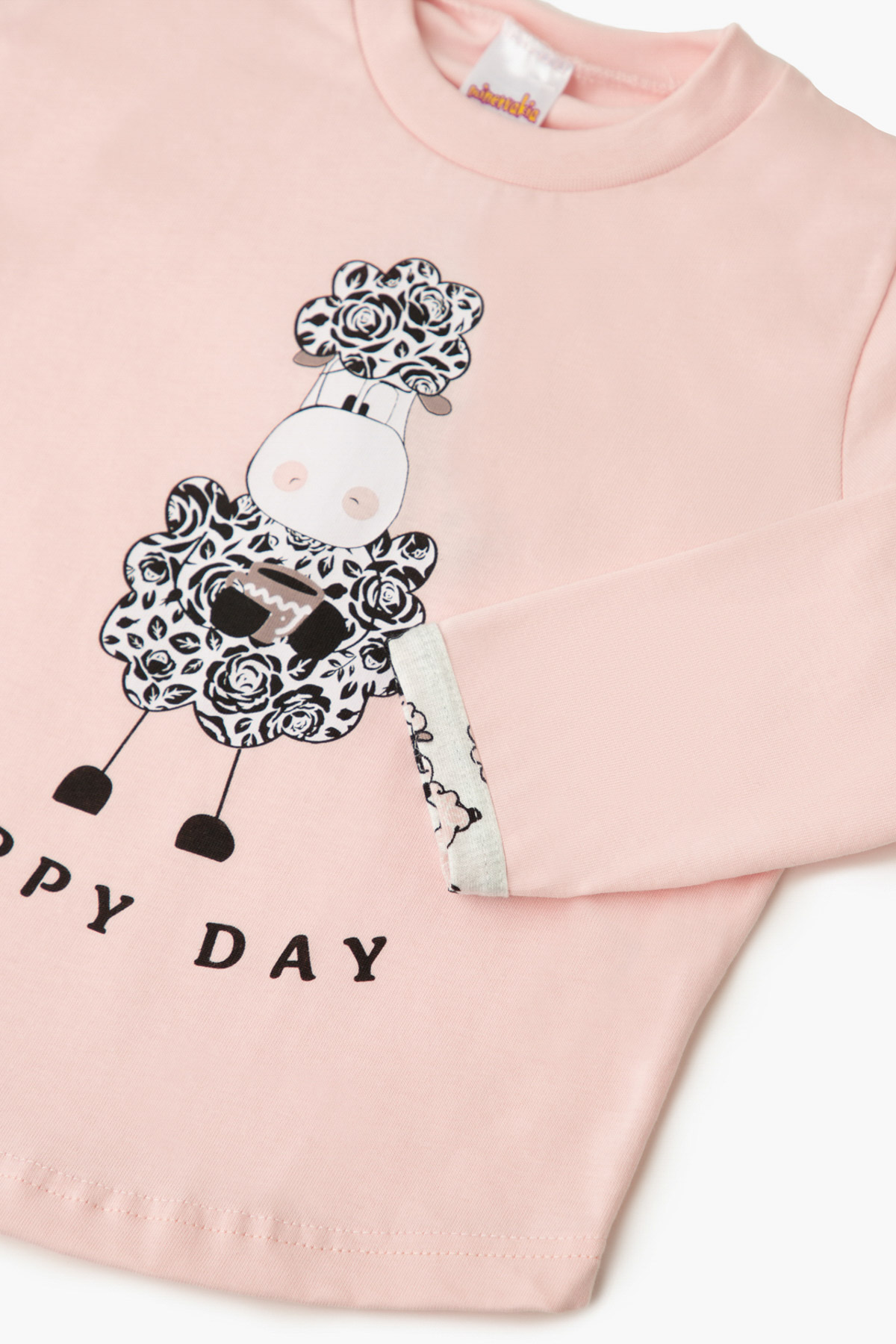 Βρεφική χειμερινή πυζάμα, από 100% βαμβάκι υψηλής ποιότητος.Το σετ περιλαμβάνει μπλούζα μονόχρωμη με τύπωμα στο στήθος και παντελόνι τυπωμένο all over, με μπάσκες στα τελειώματα. (Pink powder)
