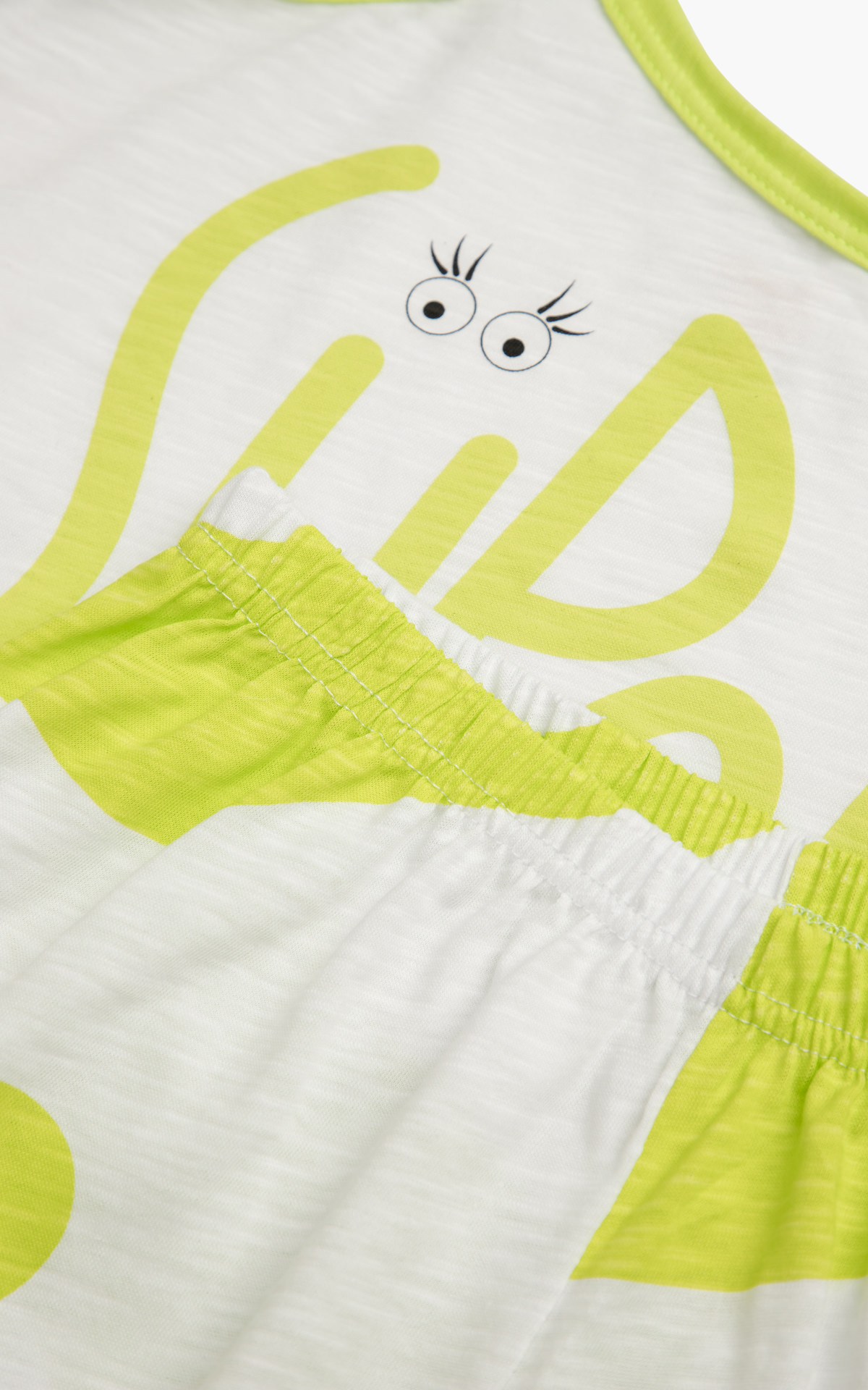 Σετ παιδικής πυζάμας, από 100% βαμβάκι, φλάμα, εξαιρετικής ποιότητας. Το σετ αποτελείται από τοπ με μπριτέλα και σορτς τυπωμένο all over. (Λευκο)