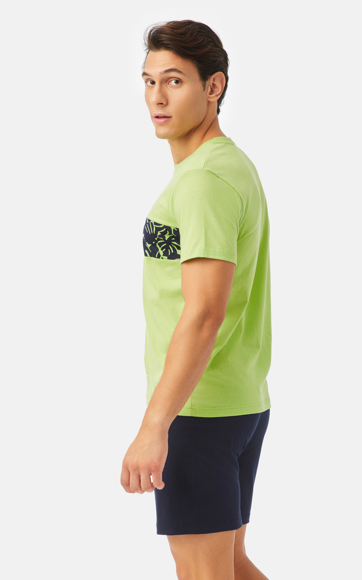 Σετ πυζάμας από 100% βαμβάκι, εξαιρετικής ποιότητας. Το σετ αποτελείται από κοντομάνικο τοπ με στρογγυλή λαιμόκοψη, τύπωμα στο στήθος και μονόχρωμο σόρτς. Εφαρμοστή γραμμή. (Λαχανι)