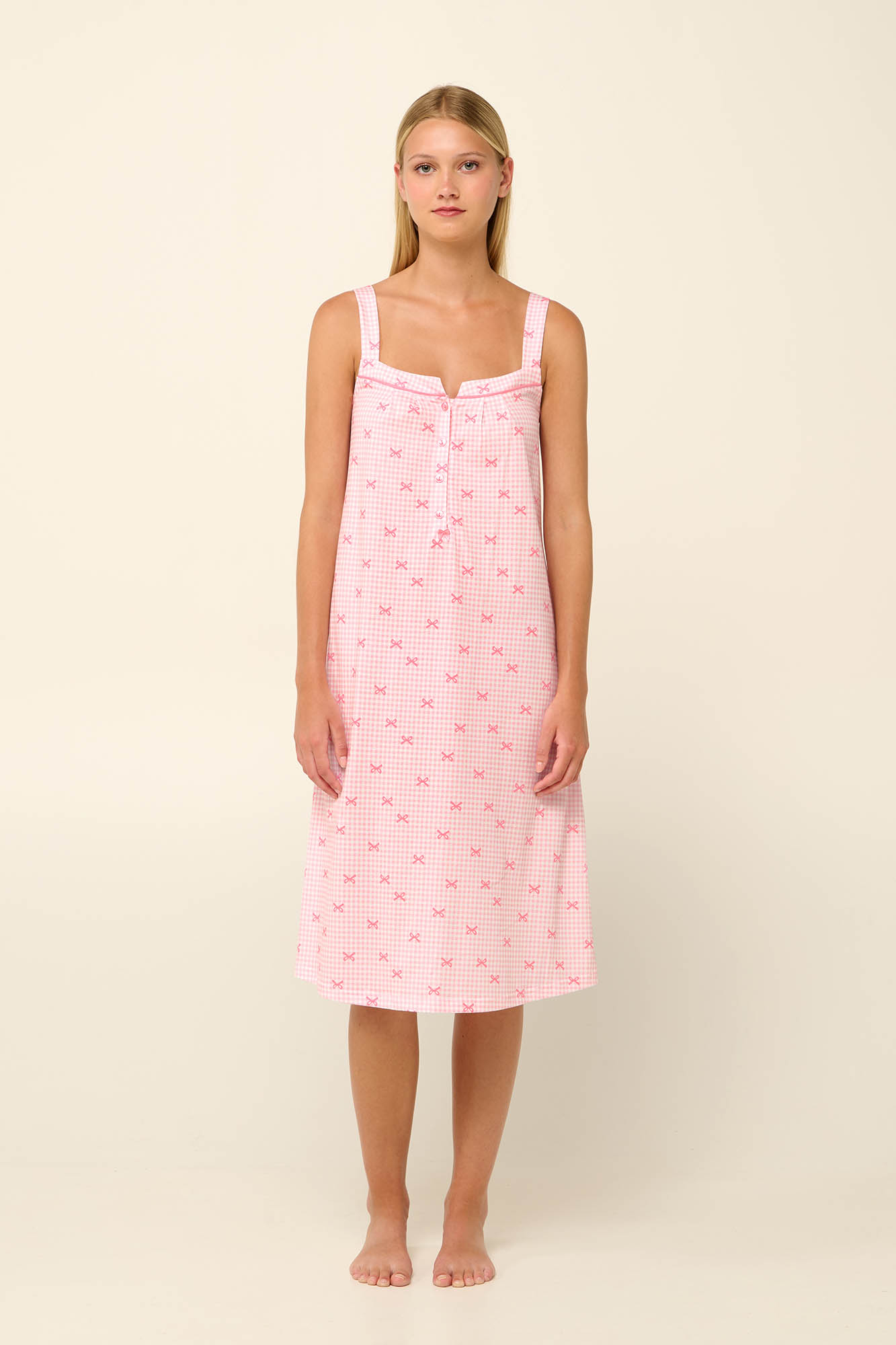 Χαλαρώστε κάθε στιγμή της ημέρας φορώντας ένα αμάνικο καλοκαιρινό νυχτικό με φιογκάκια σε καρό καμβά. Είναι σχεδιασμένο με πρακτική πατιλέτα σε χαλαρή γραμμή για βέλτιστη εφαρμογή που χαρίζει ελευθερία κινήσεων. Φτιαγμένο από 100% βαμβάκι single jersey που προσφέρει διαπνέουσα και απαλή αίσθηση στο σώμα θα σας κρατήσει άνετη και δροσερή ακόμη και της πιο ζεστές ημέρες του καλοκαιριού.