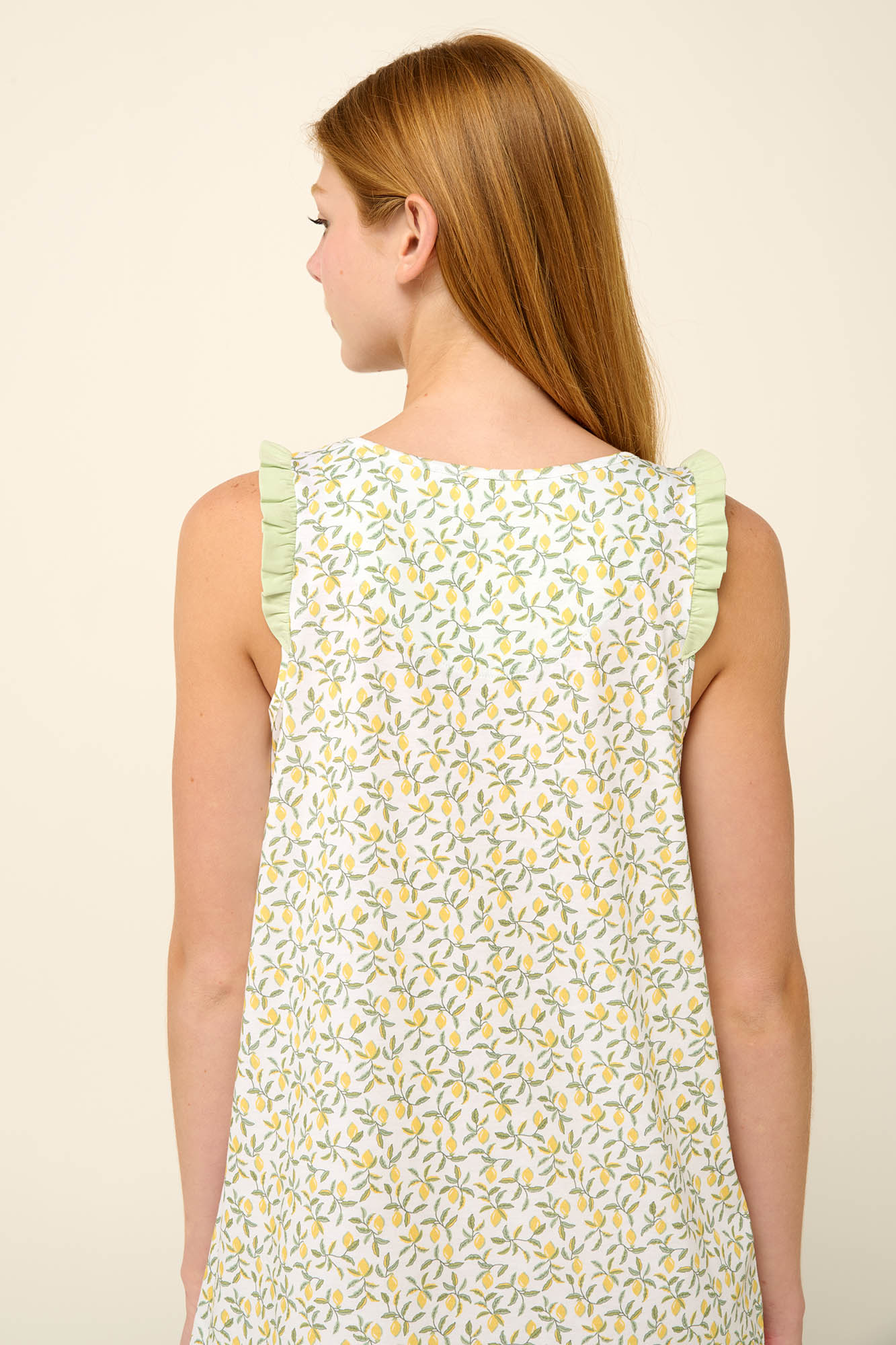 Δώστε χρώμα και φρεσκάδα στις νύχτες σας με ένα καλοκαιρινό νυχτικό σε απαλή πράσινη απόχρωση και μοτίβο με κίτρα. Σχεδιασμένο με στρογγυλή λαιμόκοψη και σούρες που χαρίζουν ανάλαφρη γοητεία και βέλτιστη εφαρμογή. Είναι κατασκευασμένο σε κανονική γραμμή από 100% βαμβάκι single jersey που επιτρέπει στο δέρμα να αναπνέει και προσφέρει δροσερή αίσθηση που θα απολαύσετε τις ζεστές καλοκαιρινές ημέρες.