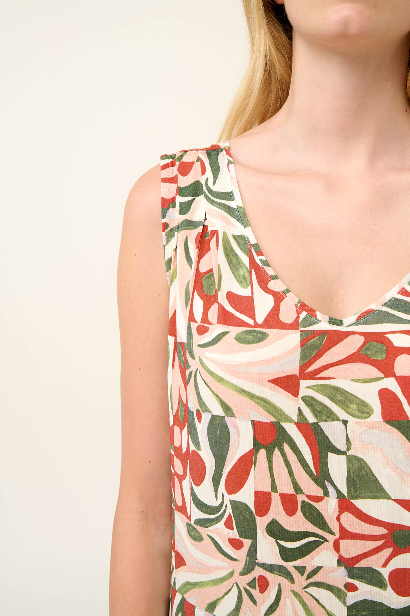 Ένα αμάνικο καλοκαιρινό νυχτικό με ζωηρό μεσογειακό φλοράλ μοτίβο, που θα αναζωογονήσει τις στιγμές χαλάρωσης σας. Σχεδιασμένο με βαθιά στρογγυλή λαιμόκοψη σε χαλαρή γραμμή προσφέρει ανάλαφρη και αέρινη εφαρμογή. Κατασκευασμένο από ύφασμα micromodal που επιτρέπει στο δέρμα αναπνέει και χαρίζει απαλή σα μετάξι αίσθηση στο σώμα, που θα απολαύσετε τις ζεστές καλοκαιρινές νύχτες. Ένα νυχτικό που συνδυάζει άνεση και καλοκαιρινή γοητεία.