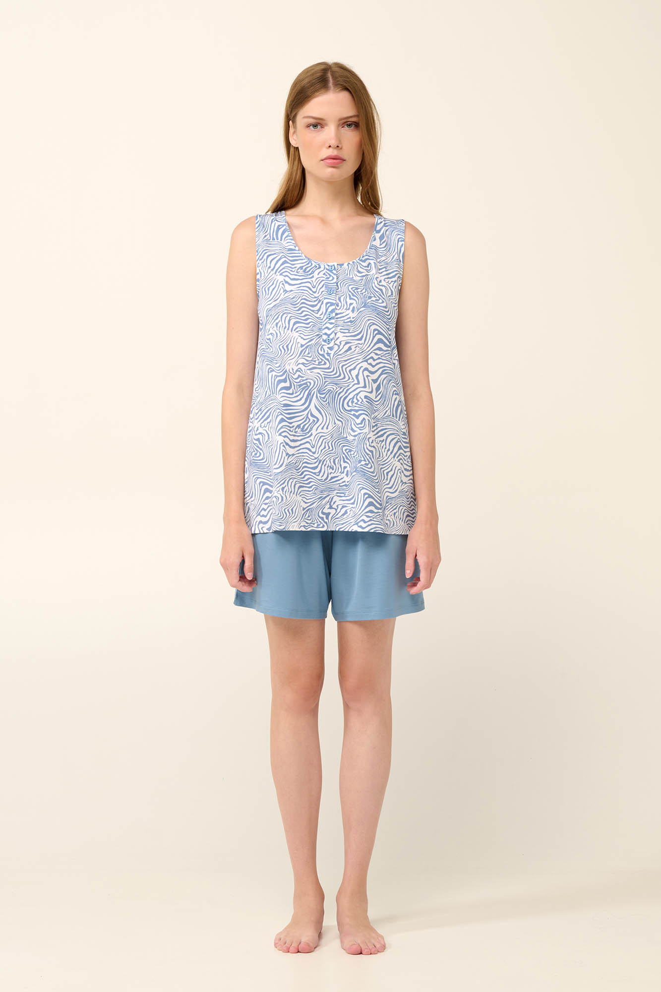 Αυτές οι καλοκαιρινές γυναικείες πυτζάμες συνδυάζουν με ευκολία, άνεση και στυλ. Το επάνω μέρος είναι διακοσμημένο με μοτίβο ζέβρας και έχει πατιλέτα μπροστά. Το σετ συμπληρώνει ένα μονόχρωμο κοντό παντελόνι σε γαλάζια απόχρωση. Κατασκευασμένο από ελαφρύ micromodal που χαρίζει μεταξένια αίσθηση στο δέρμα και επιτρέπει στο σώμα να αναπνέει θα σας βοηθήσει να απολαύσετε ένα χαλαρό απόγευμα στο καναπέ ή τη βραδινή σας ξεκούραση.